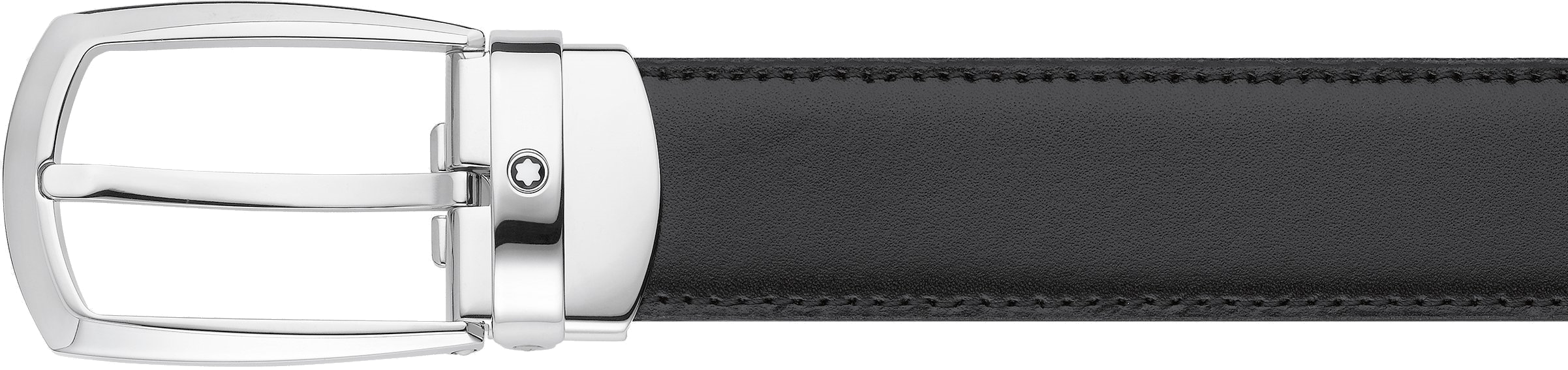 Montblanc - Opasky - MB112960 - Horseshoe Oblong Shiny Palladium finish Pin Buckle Belt