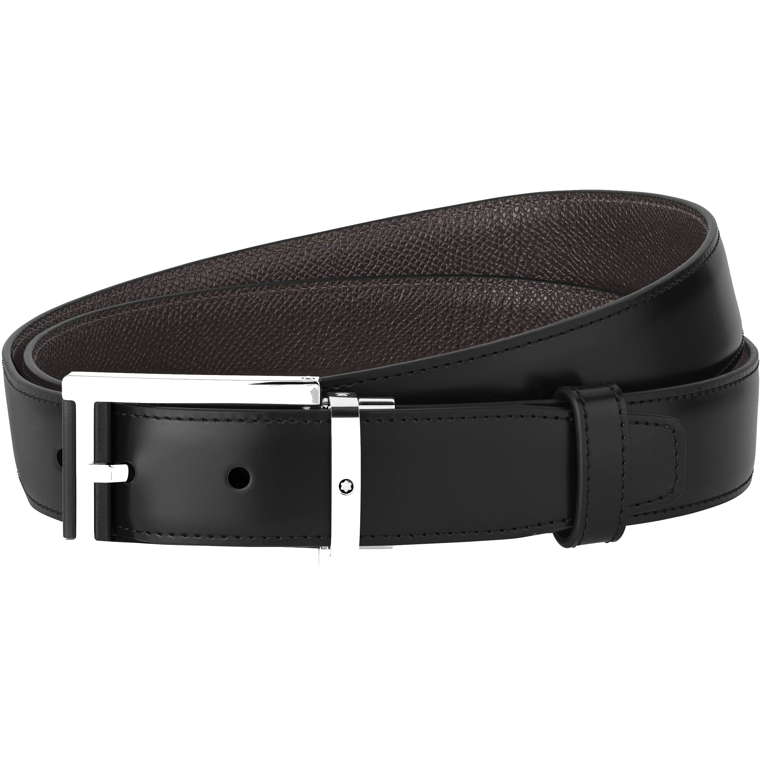 Montblanc - Opasky - MB126008 - Rectangular Stainless Steel & Black Leather Pin Buckle Belt