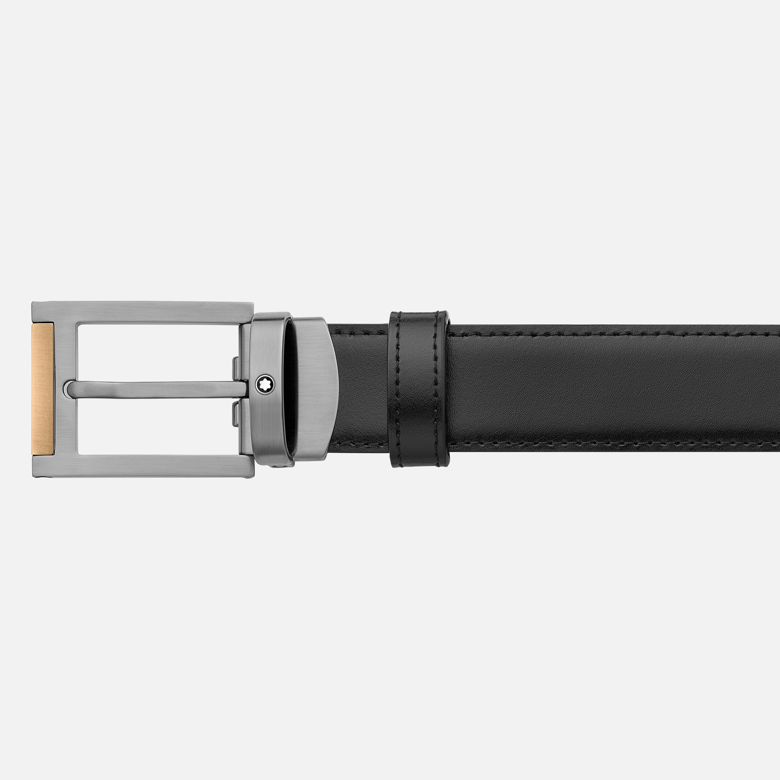 Montblanc - Opasky - MB126017 - Rectangular Stainless Steel Matte Dark and Brown Gold-Coated PVD Detailing Pin Buckle Belt