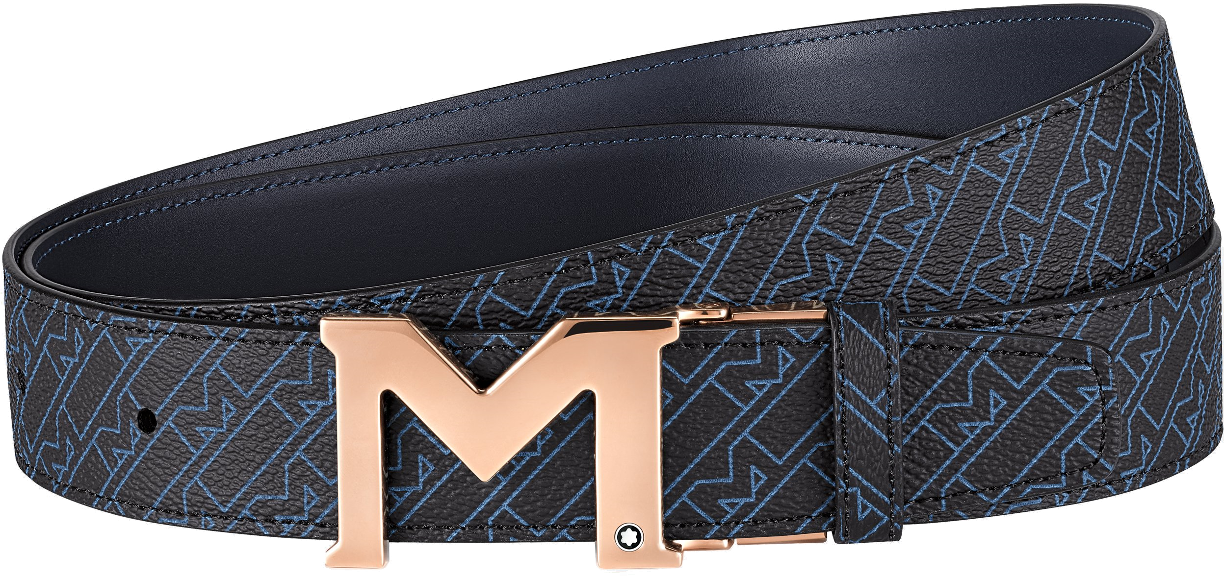Montblanc - Opasky - MB127700 - M buckle blue 35 mm reversible PVC belt