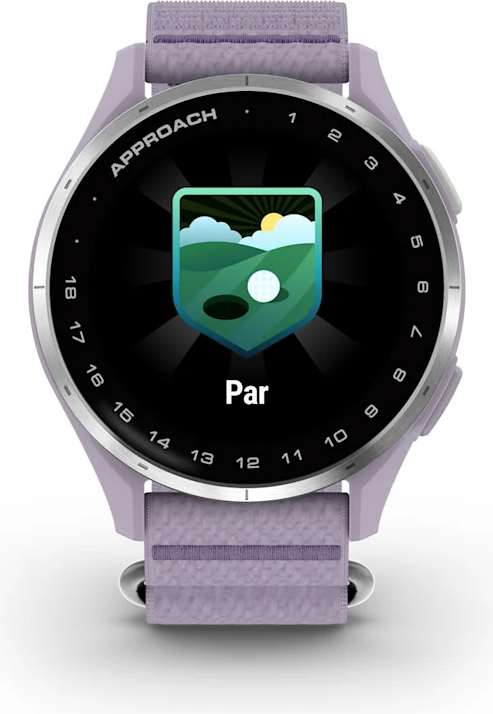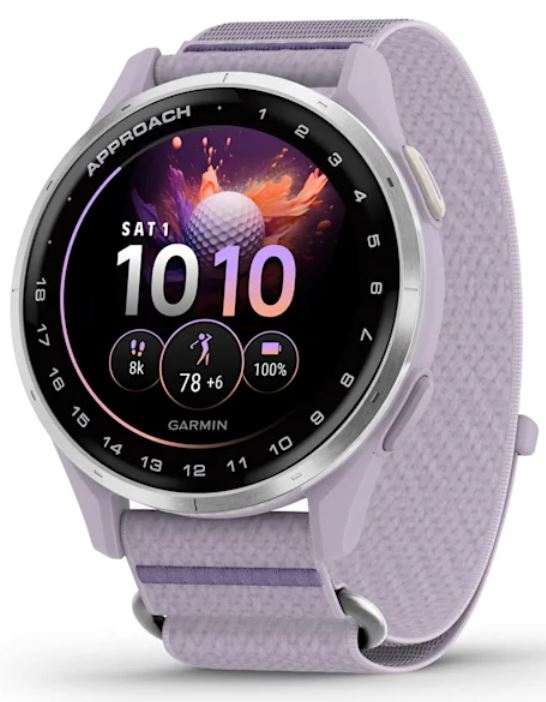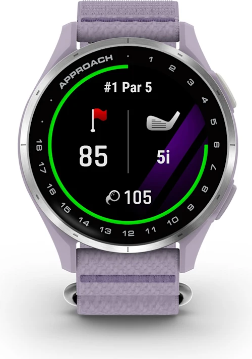 Garmin - Approach® J1 - Hliníková luneta Silver a textilní řemínek ComfortFit v barvě Lilac