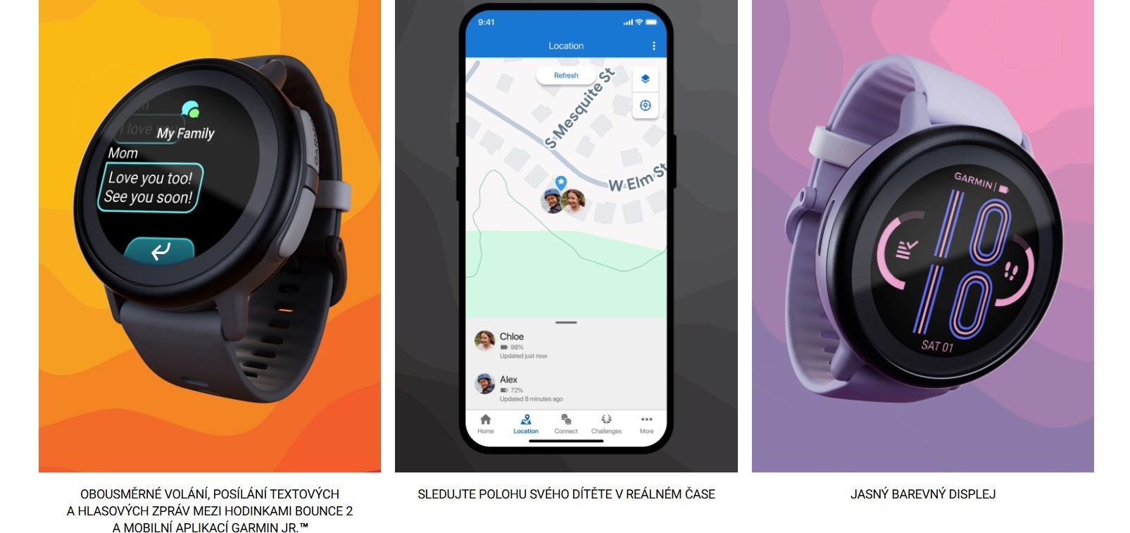 Aplikace Garmin Jr. umožňuje i obousměrnou textovou komunikaci. Rodiče mohou posílat dětem krátké zprávy přímo do hodinek Bounce 2, a děti na ně mohou odpovídat – buď z vlastních předpřipravených textů, nebo psaním vlastních odpovědí. Zprávy lze směrovat pouze ke kontaktům schváleným rodičem, nebo do rodinné skupiny, takže komunikace zůstává bezpečná a uzavřená.