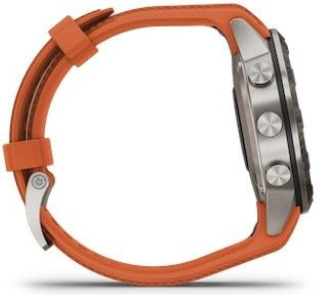 Titan je lehký kov šedé barvy, který pro svou širokou škálu výhod využívá nejedno průmyslové odvětví. Titan je opět barevně stálý, je velmi lehký (až o polovinu lehčí než ocel), tvrdý a absolutně antialergický - neobsahuje žádný nikl a zvláštní je tím, že v matu má barvu šedou, zatímco v lesku jasnou zrcadlovou stříbrnou. Titan je až o polovinu lehčí než ocel. Garmin používá pro spojování článků titanových náramků výhradně ten nejpevnější systém vyzkoušený a prověřený časem napříč všemi hodinářskými značkami - spojování šroubky.