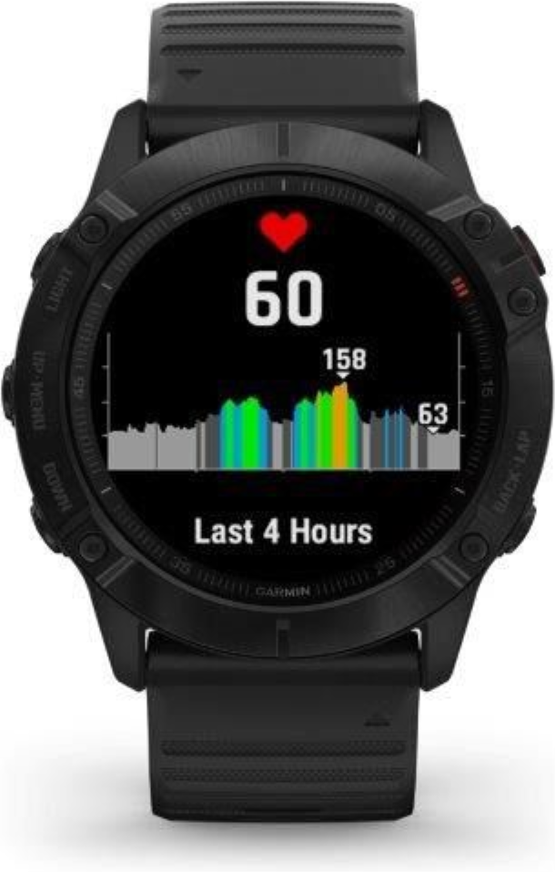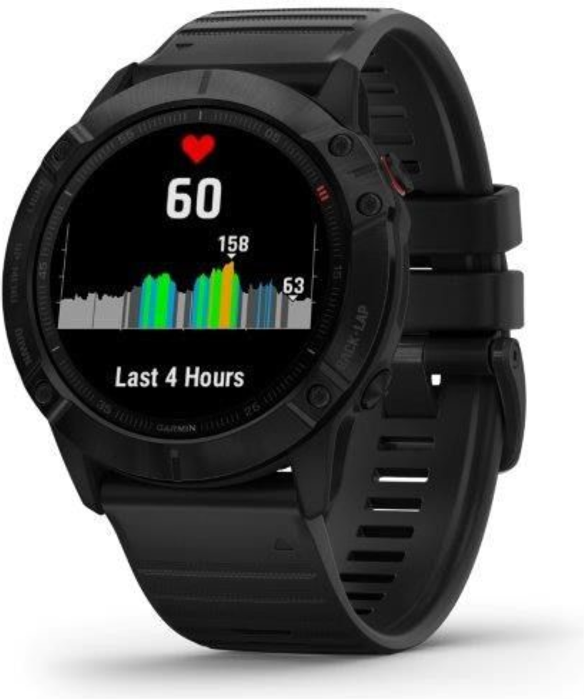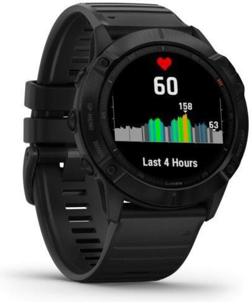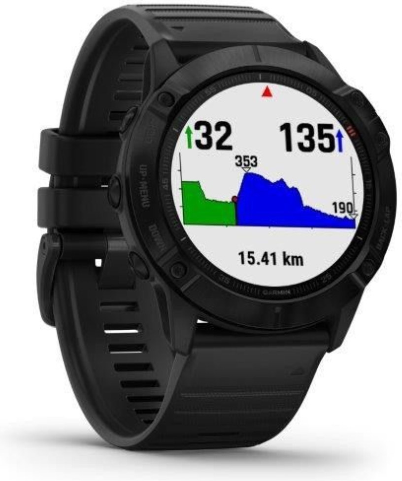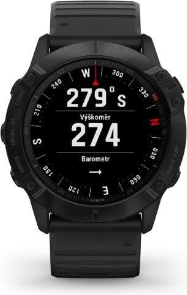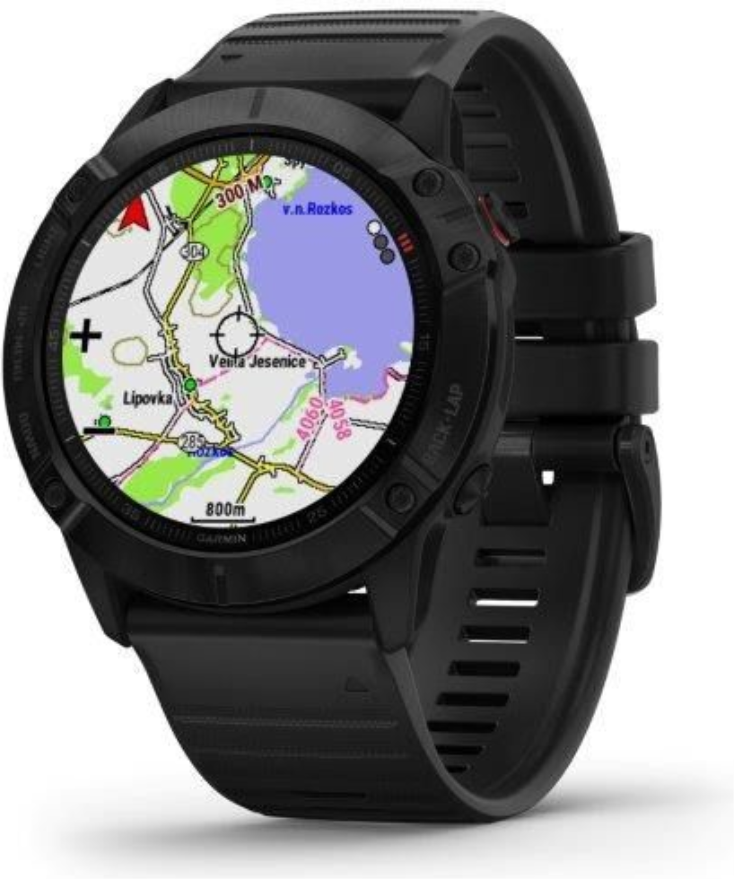 Garmin fenix6X Glass, Black/Black Band (MAP/Music) je model s největší velikostí těla (Fénix6X) a displeje. Průměr displeje je 1,4“ (oproti předchozí generaci Fénix5X Plus došlo o zvětšení plochy displeje o 36%). Hodinky jsou chráněné tvrzeným sklíčkem Gorilla Glass 3. Černá luneta je vyrobena z ušlechtilé oceli. Hodinky mají černý, měkký silikonový řemínek vhodný jak na sport, tak i na běžné nošení. Hodinky mají v paměti předinstalované mapy s možností automatické navigace, jsou vybavené WiFi konektivitou a nabízejí přehrávání hudby z vlastní paměti (32GB), do které je možné nahrát jak vlastní hudební soubory, tak i seznamy skladeb ze streamovacích hudebních služeb, jako je Spotify nebo Deezer. Vestavěný LiIon akumulátor nabízí extrémně dlouhou výdrž hodinek na 1 nabití.
