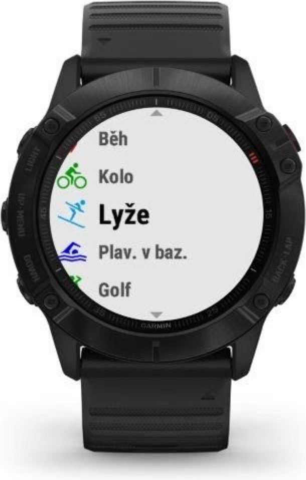 Garmin fenix6 jsou především špičkovým sporttestrem s podrobným měřením a vyhodnocením široké škály sportovních aktivit, pokročilým plánováním tréninků a vyhodnocováním výkonosti. K dispozici jsou profily pro běh, cyklistiku, plavání, lyžování, veslování, golf, triatlon, fitness, silový trénink a řadu dalších venkovních i halových sportů.Každý z profilů si navíc můžete upravit podle svých potřeb, datová pole a obrazovky jsou libovolně nastavitelné. U aktivit si lze nastavit alarmy (na srdeční tep, vzdálenost, tempo/rychlost atd.), délky okruhů, vytvářet a stahovat tréninky (včetně intervalových) a cíle. Po uložení se zaznamenaná aktivita automaticky přenese do tréninkového denníku Garmin Connect. Přenos dat se uskutečňuje bezdrátově prostřednictvím Bluetooth/chytrého telefonu, pomocí registrované WiFi nebo ručně pomocí USB kabelu a počítače s internetovým připojením. Po uložení aktivity jsou k dispozici data s komplexním vyhodnocením tréninku, včetně doporučené doby regenerace, tréninkového efektu a přehledných grafů v aplikaci. Zaznamenaná data můžete na dálku sdílet s přáteli nebo s trenérem. Prostředí hodinek i tréninkového deníku je k dispozici plně v českém jazyce.