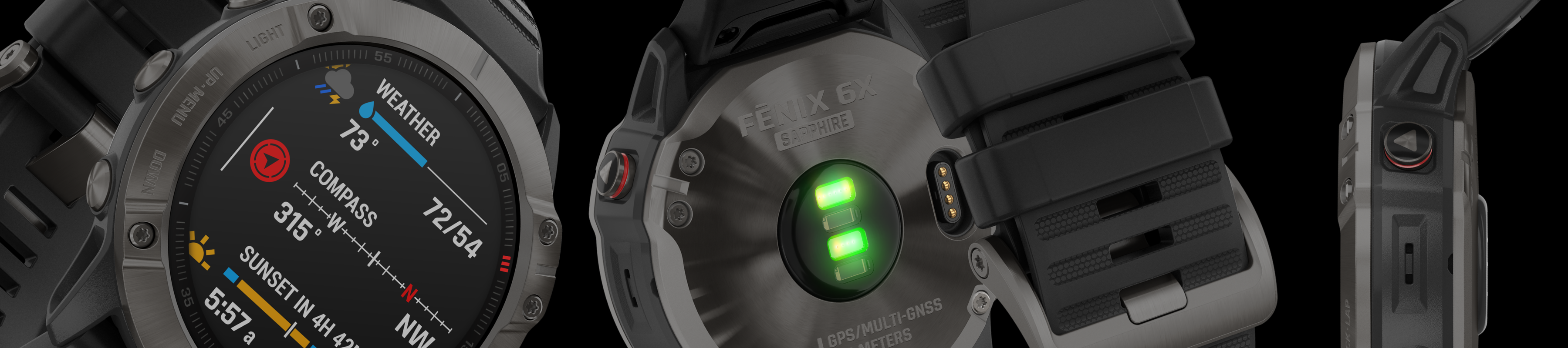 Fenix6 dokáží přijímat a pracovat se signálem tří nejrozšířenějších globálních satelitních systémů: americký GPS, ruský GLONASS a evropské Galileo. Základním satelitním systémem nadále zůstává GPS a satelitní funkce jsou tak v popisu často zjednodušeně označované jako „GPS“. Satelitní signál se využívá především pro sportovní a navigační funkce hodinek. GPS je schopné spolehlivě a přesně měřit pozici, rychlost, tempo, vzdálenost, čas a celou řadu odvozených veličin. Hodinky pomocí GPS zobrazují na displeji i vaši aktuální pozici v mapové stránce a případně navigují na zadaný cíl po automaticky nebo předem naplánované trase. Hodinky jsou doplněné o řadu věstavěných čidel - elektromagnetický kompas, barometrický výškoměr, teploměr, akcelerometr a gyroskop, optický snímač srdečního tepu schopný na zápěstí měřit i tep a okysličení krve (pulsní oxymetr). Vylepšený optický snímač tepu nabízí rychlejší odezvu a přesnější měření a nově je schopný měřit srdeční tep i ve vodě během plavání.