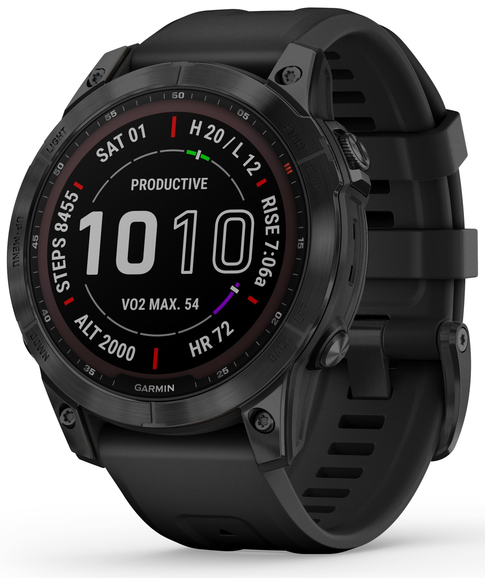 Titan je lehký kov šedé barvy, který pro svou širokou škálu výhod využívá nejedno průmyslové odvětví. Titan je opět barevně stálý, je velmi lehký (až o polovinu lehčí než ocel), tvrdý a absolutně antialergický - neobsahuje žádný nikl a zvláštní je tím, že v matu má barvu šedou, zatímco v lesku jasnou zrcadlovou stříbrnou. Titan je až o polovinu lehčí než ocel. Garmin používá pro spojování článků titanových náramků výhradně ten nejpevnější systém vyzkoušený a prověřený časem napříč všemi hodinářskými značkami - spojování šroubky.