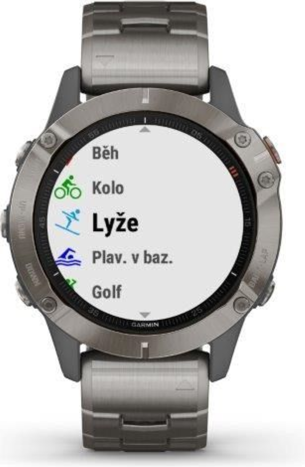 Garmin fenix6 jsou především špičkovým sporttestrem s podrobným měřením a vyhodnocením široké škály sportovních aktivit, pokročilým plánováním tréninků a vyhodnocováním výkonosti. K dispozici jsou profily pro běh, cyklistiku, plavání, lyžování, veslování, golf, triatlon, fitness, silový trénink a řadu dalších venkovních i halových sportů.Každý z profilů si navíc můžete upravit podle svých potřeb, datová pole a obrazovky jsou libovolně nastavitelné. U aktivit si lze nastavit alarmy (na srdeční tep, vzdálenost, tempo/rychlost atd.), délky okruhů, vytvářet a stahovat tréninky (včetně intervalových) a cíle. Po uložení se zaznamenaná aktivita automaticky přenese do tréninkového denníku Garmin Connect. Přenos dat se uskutečňuje bezdrátově prostřednictvím Bluetooth/chytrého telefonu, pomocí registrované WiFi nebo ručně pomocí USB kabelu a počítače s internetovým připojením. Po uložení aktivity jsou k dispozici data s komplexním vyhodnocením tréninku, včetně doporučené doby regenerace, tréninkového efektu a přehledných grafů v aplikaci. Zaznamenaná data můžete na dálku sdílet s přáteli nebo s trenérem. Prostředí hodinek i tréninkového deníku je k dispozici plně v českém jazyce.