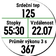 Vyhodnocení výkonuVyhodnocení běžeckého a cyklistického VO2Max, doporučení doby regenerace, živé segmenty STRAVA, FTP (při použití wattmetru a hrudního snímače tepu), laktátový práh (při použití hrudního snímače tepu), tréninkový efekt a tréninkový status.