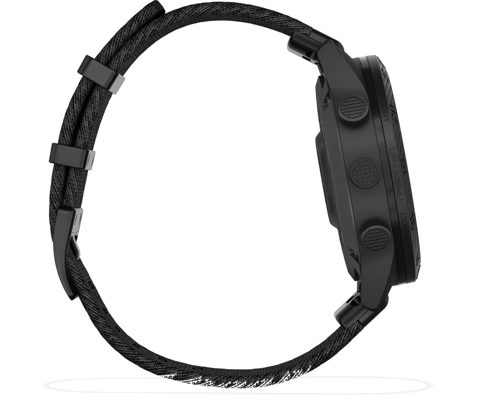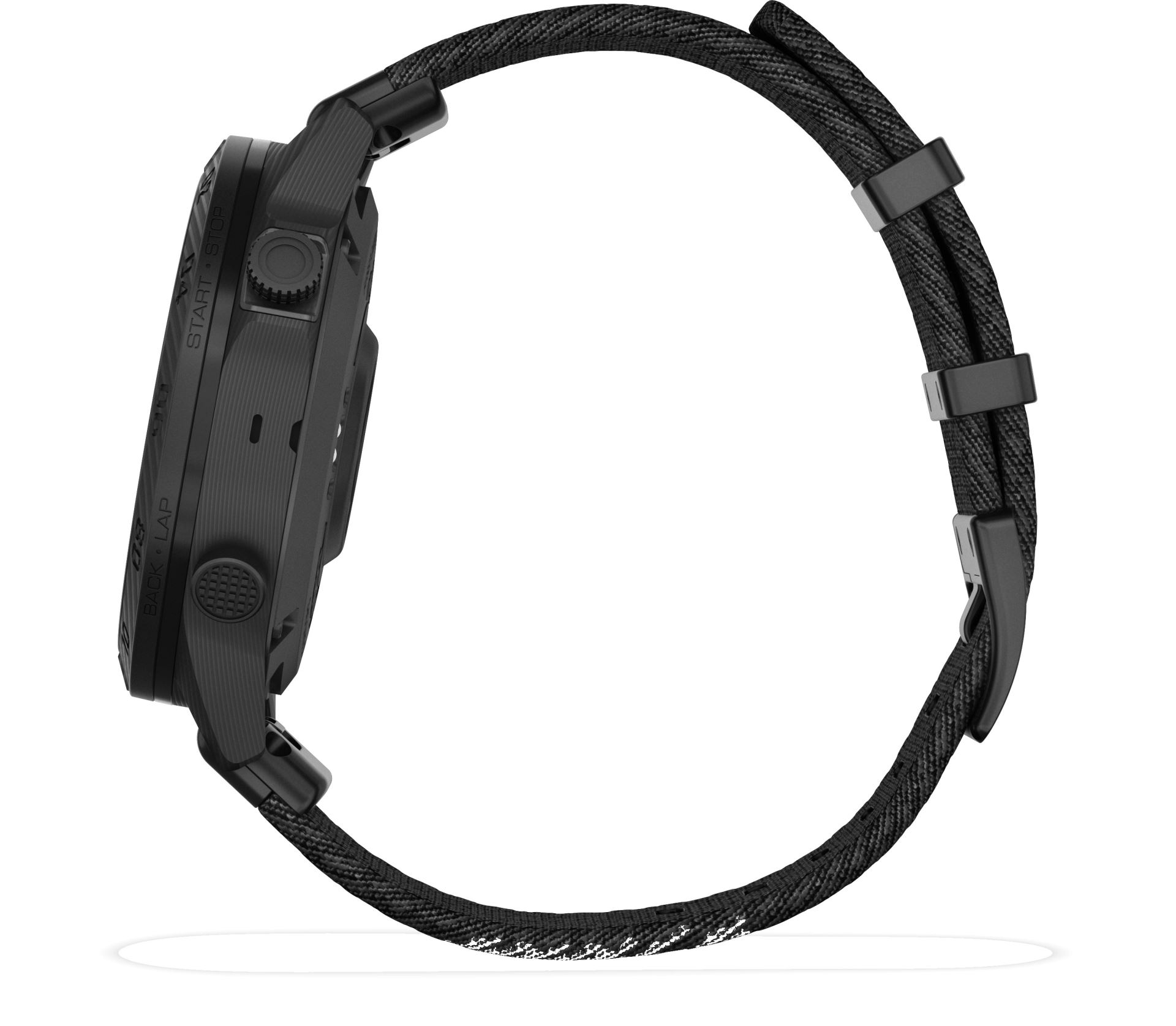 Titan je lehký kov šedé barvy, který pro svou širokou škálu výhod využívá nejedno průmyslové odvětví. Titan je opět barevně stálý, je velmi lehký (až o polovinu lehčí než ocel), tvrdý a absolutně antialergický - neobsahuje žádný nikl a zvláštní je tím, že v matu má barvu šedou, zatímco v lesku jasnou zrcadlovou stříbrnou. Titan je až o polovinu lehčí než ocel. Garmin používá pro spojování článků titanových náramků výhradně ten nejpevnější systém vyzkoušený a prověřený časem napříč všemi hodinářskými značkami - spojování šroubky.