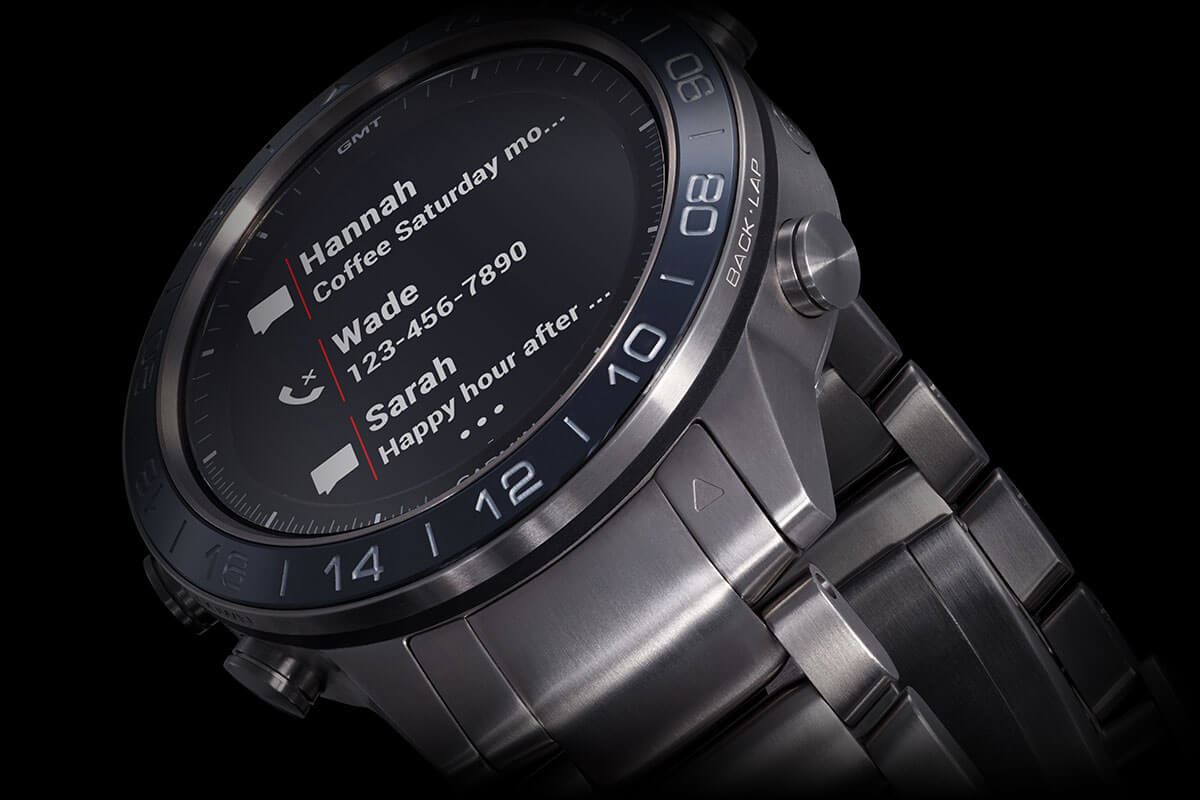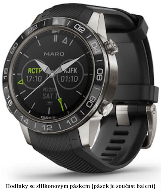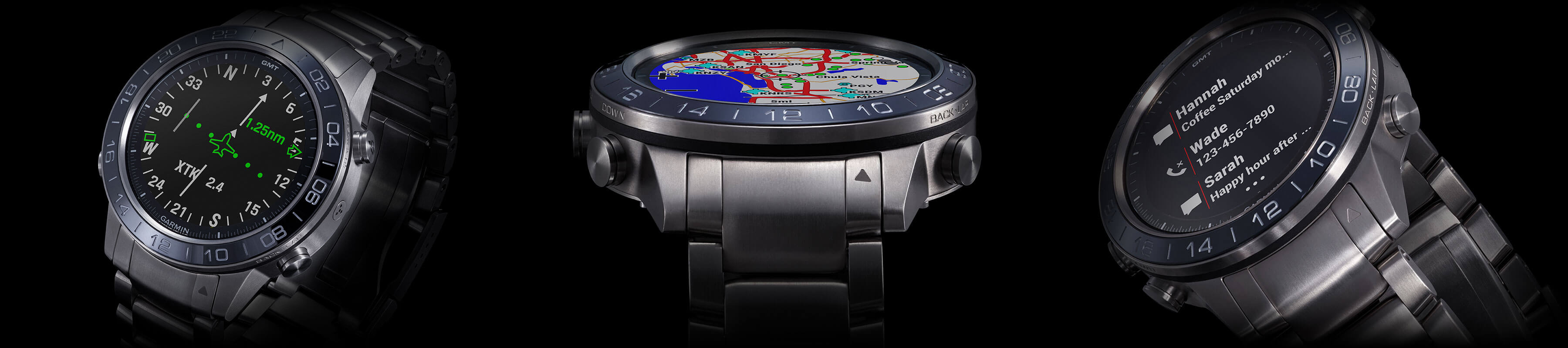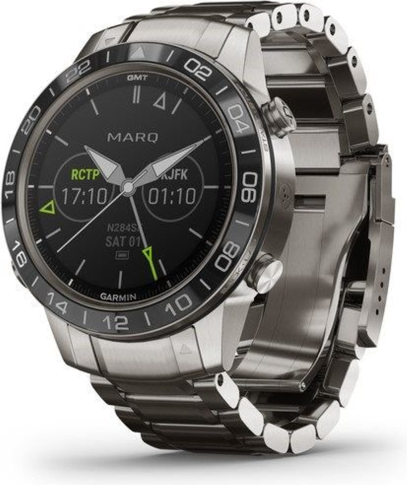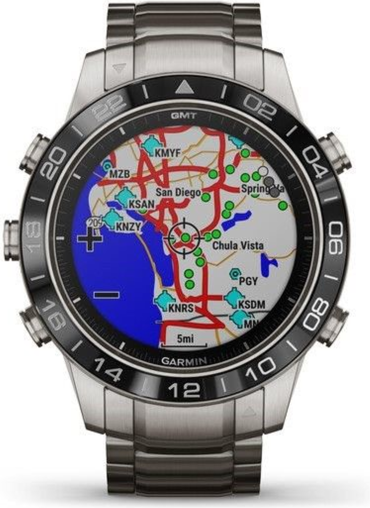 Ať už jste pilot nebo letecký nadšenec, hodinky MARQ Aviator vám ve vzduchu dodají jistotu. Hodinky jsou vybavené jak všestrannými chytrými funkcemi, tak i leteckými, jako je celosvětová letecká databáze, nouzová navigace do nejbližšího cíle, podrobné meteorologické NEXRAD informace či komunikaci s kompatibilní leteckou elektronikou Garmin. Lesklé tělo s 24hodinovým GMT ciferníkem a dvěma dalšími časovými zónami přijde vhod při častém cestování. Pohodlný, článkový titanový řemínek padne jako ulitý. Hodinky během letu ukazují, kam máte namířeno, po příletu vám potvrdí cílovou destinaci.