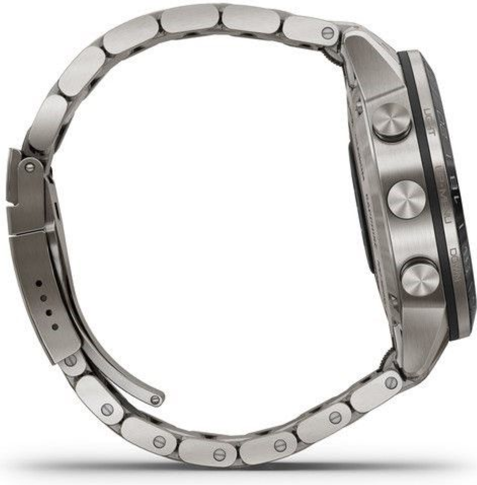 Hodinky Garmin MARQ Aviator zaujmou lehkým, elegantním titanovým řemínkem. Na první pohled robustní tělo hodinek je na ruce příjemně lehké. Při bližším prozkoumání titanového článkového řemínku objevíte unikátní design článků, jejichž tvar je inspirovaný tvarem leteckých křídel. Pokud patříte k šťastlivcům, kteří mají své letadlo, můžete jeho imatrikulační znaky zadat na pozadí originálního ciferníku hodinek. Ciferník hodinek umí zobrazit kromě aktuálního času dvě dodatečné časové zóny na zvolených světových letištích.