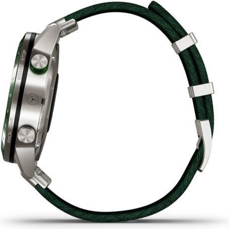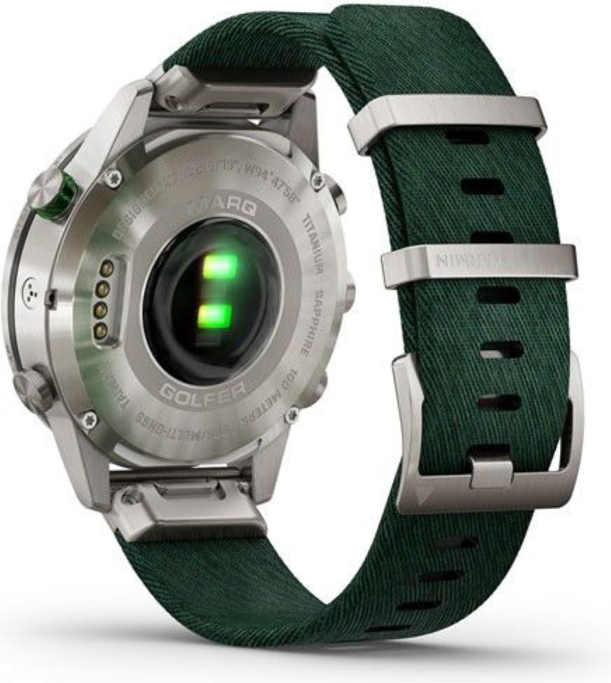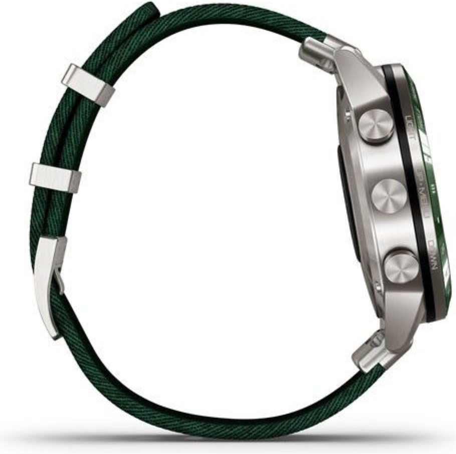 Titan je lehký kov šedé barvy, který pro svou širokou škálu výhod využívá nejedno průmyslové odvětví. Titan je opět barevně stálý, je velmi lehký (až o polovinu lehčí než ocel), tvrdý a absolutně antialergický - neobsahuje žádný nikl a zvláštní je tím, že v matu má barvu šedou, zatímco v lesku jasnou zrcadlovou stříbrnou. Titan je až o polovinu lehčí než ocel. Garmin používá pro spojování článků titanových náramků výhradně ten nejpevnější systém vyzkoušený a prověřený časem napříč všemi hodinářskými značkami - spojování šroubky.