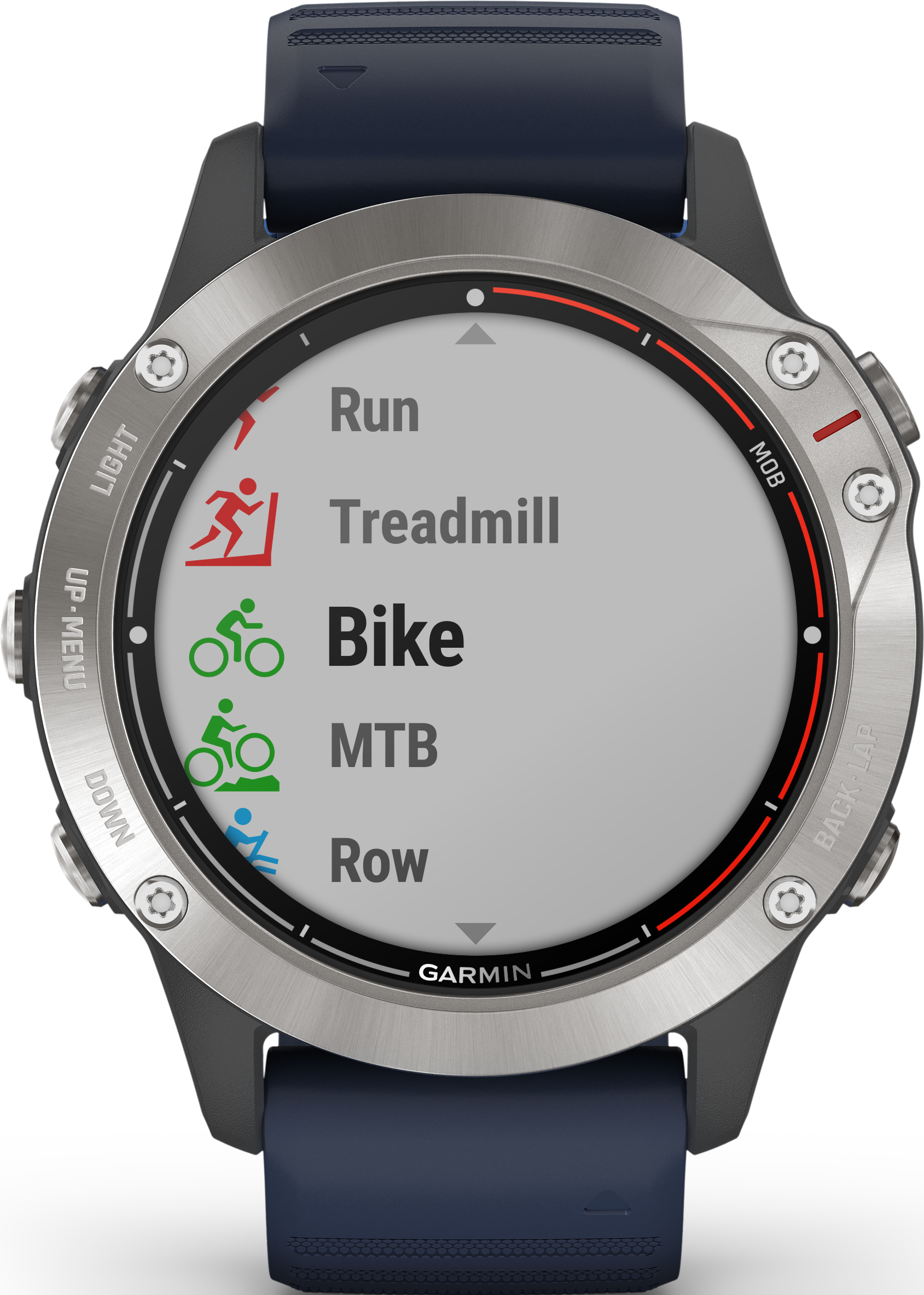 APLIKACE PRO SPORT - Garmin Fenix 6 jsou multisportovní hodinky, které umožňují měření aktivit na vodě i na souši. V základní nabídce naleznete tyto profily: Běh, Trailový běh, Krytá dráha, Virtuální běh, Běžecký pás, Kolo, Kolo uvnitř, Horská kola, Swimrun, Triatlon, Multisport, Chůze, Turistika, Lezení, Expedice, Bouldering, Climb Indoor, Lyžování mimo sjezdovky, Lyže, Snowbord, Běžky volný styl, XC Classic Ski, Plavání v bazénu, Otevřená voda, Loď, SUP (Stand Up Paddle Board), Kajak, Veslování, Veslování uvnitř, Pilates, Jóga, Stepper, Vystoupaná patra, Eliptický trenažér, Kardio, Síla, Golf, Truswing, Sledovat mě, Navigovat, Projektování TB, Mapa, Zátěž VST, Taktické, Jumpmaster, Dýchání, Hodiny, Historie, Jiné (umožňuje vytvoření uživatelské aktivity). Hodinky je možné dále rozšiřovat o aplikace třetích stran, např. InLine bruslení, Jezdectví a podobně.