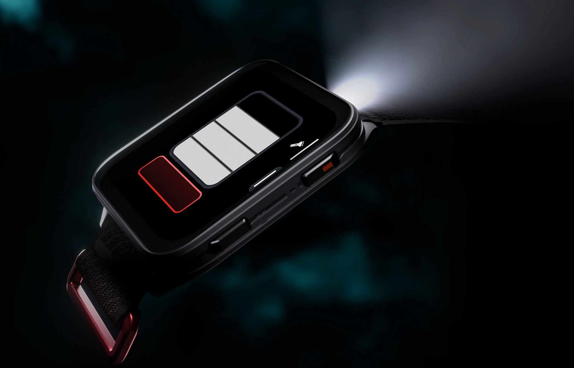 - Na boční straně pouzdra je zapuštěná velmi výkonná LED svítilna. Nejen při slabém osvětlení (za šera, za tmy) využijete tuto vysoce výkonnou LED svítilnu se dvěma barvami světla, nastavitelnou intenzitou a různými režimy svícení. Režim červeného světla vám v noci pomůže s bezpečnostním osvětlením.