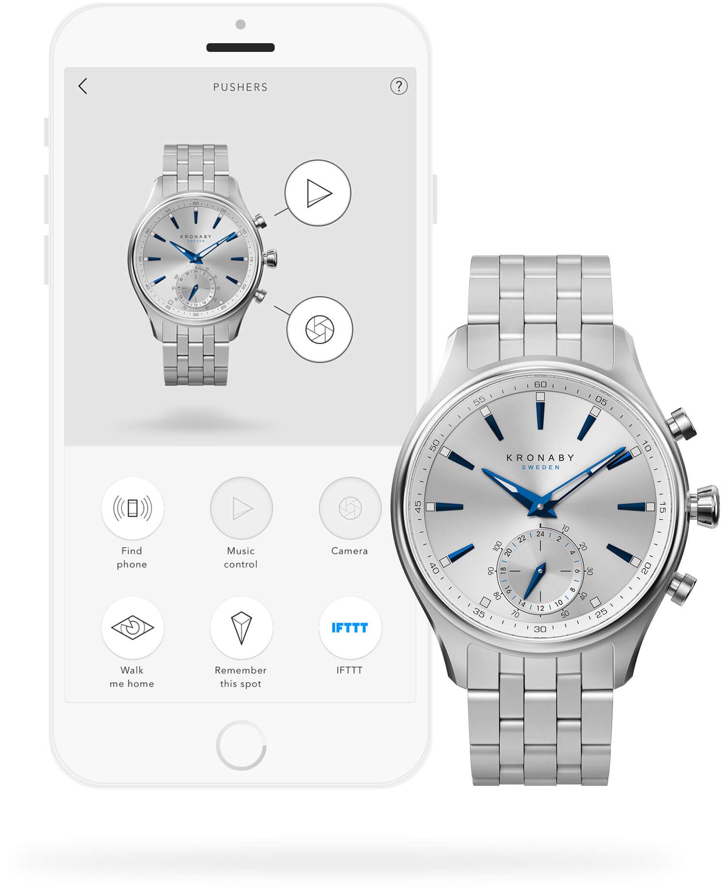 • Funkce a popis:Čas, datum, duální čas, chronograf, svítící ručky a indexy, automatické nastavení časového pásma, vibrační budík, vibrační upozornění na hovor a SMS, odmítnutí hovoru, monitoring dlouhého sezení, krokoměr, časovač, ovládání fotoaparátu, vyhledání telefonu, ovládání hudby, funkce zavedení domů, zapamatování místa. Hodinky jsou napájené kvalitní baterií, takže je nemusíte denně dobíjet (baterie vydrží standardních 2 - 2,5 roku). Kompatibilita: Bluetooth 4.1 a vyšší, Android 5.0 a vyšší, iOS 9 a vyšší