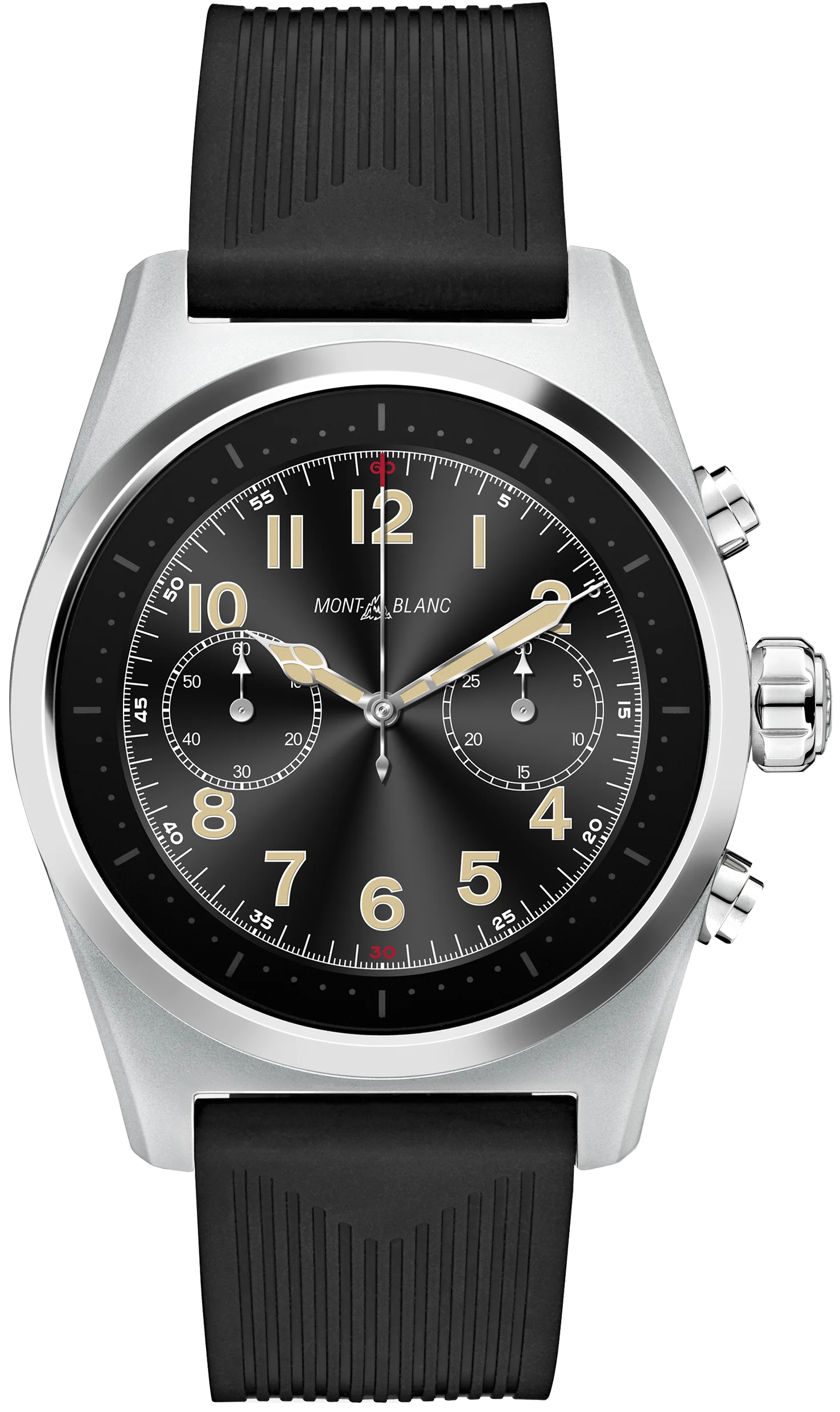 • Funkce a popis:Čas, propojení s chytrým telefonem (smartphonem) - notifikace (sms, zobrazení volajícího atd.), timer, stopky, Google Pay - hodinkami lze platit, Měření srdečního tepu - tepové zóny, Integrovaný barometr, Montblanc Body Energy - měření energie těla, Montblanc Cardio Coach - kardio trenér, Montblanc Stress App - aplikace měření stresu, Montblanc Sledování spánku - aplikace sledování hloubky spánku, Čipová sada: Snapdragon 3100, Voice assistant: Google Assistant, vteřinová ručička imituje plynulý chod mechanických hodinek