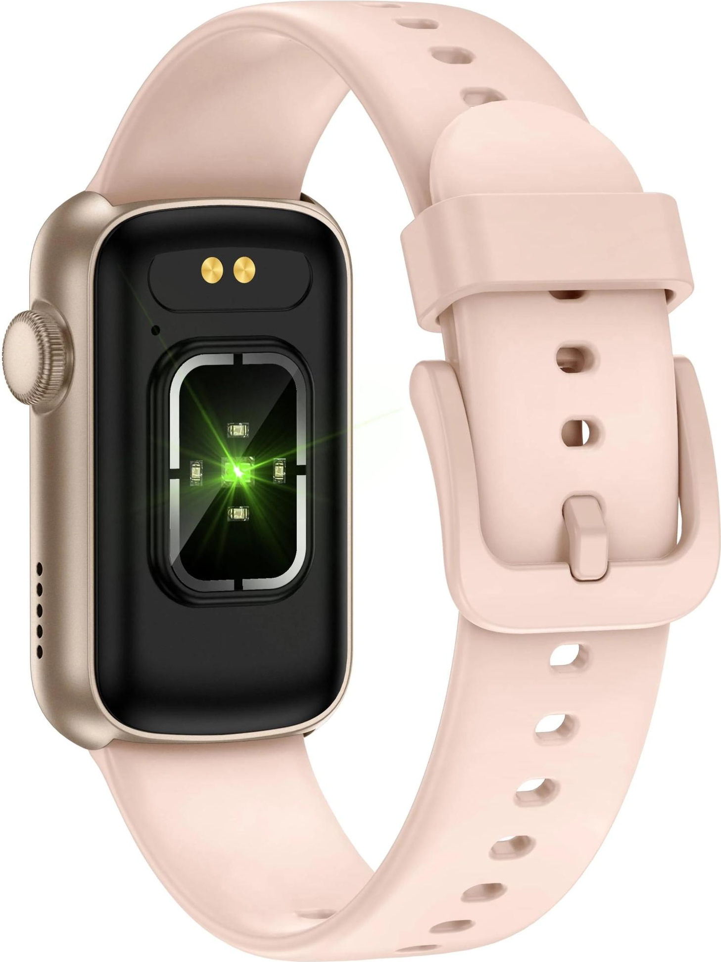 • Funkce a popis: Klasický TFT / IPS dotykový LCD displej Hlasový asistent (AI Voice Assist) – umožňuje ovládat určité funkce hodinek hlasem.  Telefonování a notifikace – hodinky podporují přijímání hovorů a zobrazování oznámení z telefonu. Vlastní číselníky – možnost změny vzhledu displeje hodinek dle vkusu.  Ovládání hudby, počasí, dálkové ovládání fotoaparátu, funkce „najdi telefon“.  Sledování aktivity a tréninkových režimů – kroky, spálené kalorie, běh, skákání, jízda na kole a další sporty.  Monitorování zdravotních údajů – tepová frekvence, krevní tlak, hladina kyslíku v krvi (SpO₂), sledování spánku. Kompatibilita s Android i iOS – hodinky lze propojit s mobilním telefonem obou hlavních platforem. Nabíjení pomocí USB / nebo magneticky – typické pro tento model.