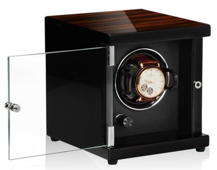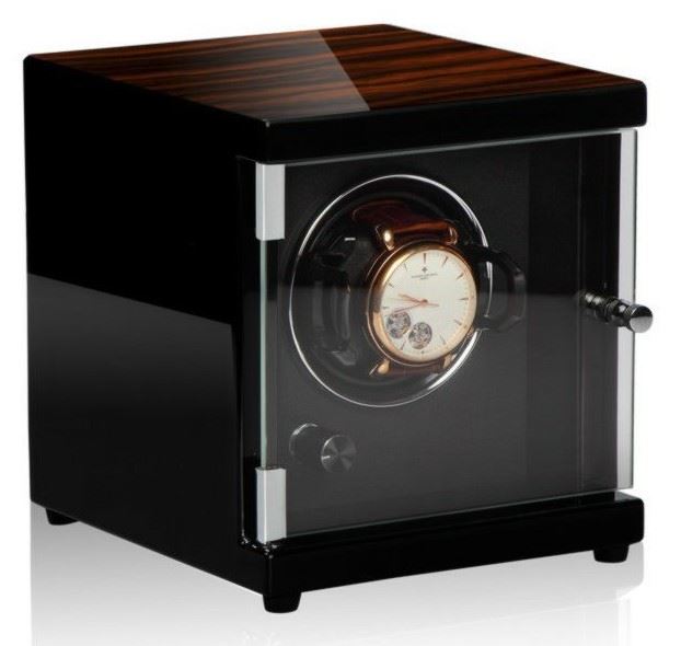 • Funkce a popis:Velmi tichý natahovač na hodinky Uno 110-51 MCS-BK (watch winder) značky KRAFF, natahovač k natažení jednoho kusu mechanických hodinek s lesklým lakovaným mahagónovo - černým povrchem