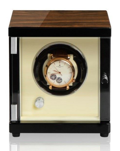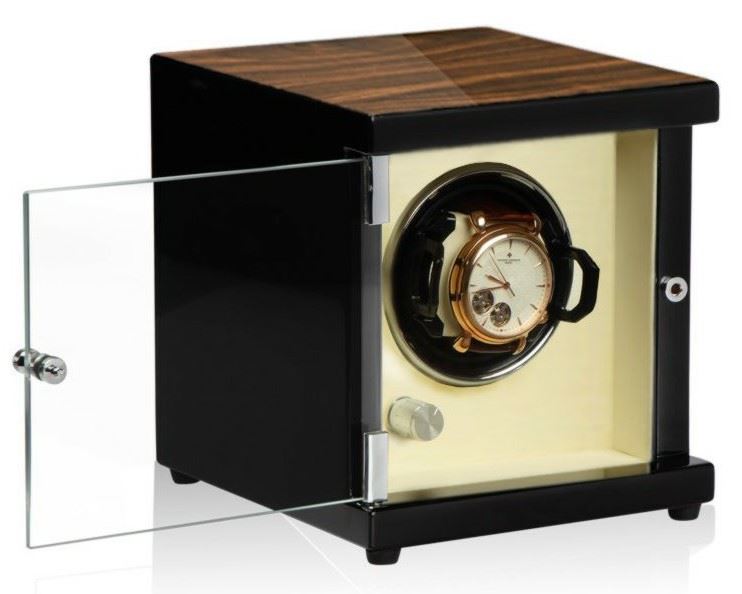 • Funkce a popis:Velmi tichý natahovač na hodinky Uno 110-92 BR-BK (watch winder) značky KRAFF, natahovač k natažení jednoho kusu mechanických hodinek s lesklým lakovaným hnědo - černým povrchem