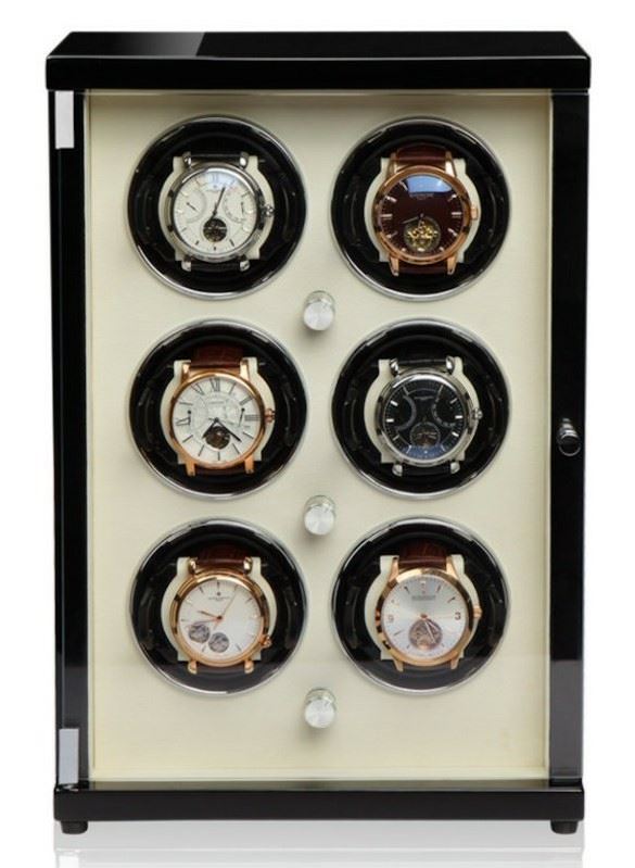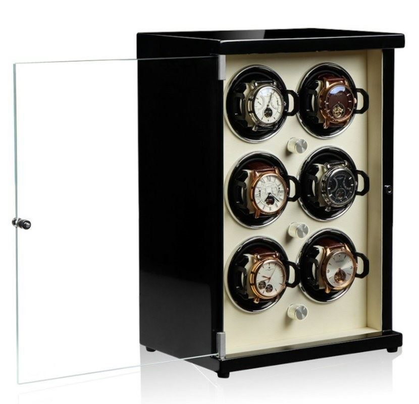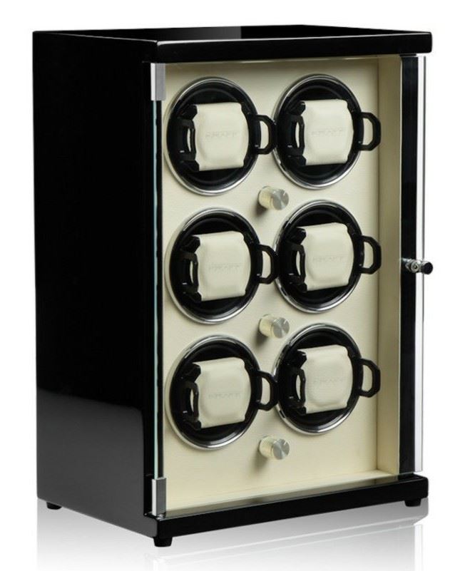 • Funkce a popis:Velmi tichý natahovač na hodinky Sei 160-12 BK-CR (watch winder) značky KRAFF, natahovač k natažení šesti kusů mechanických hodinek s lesklým lakovaným černým povrchem