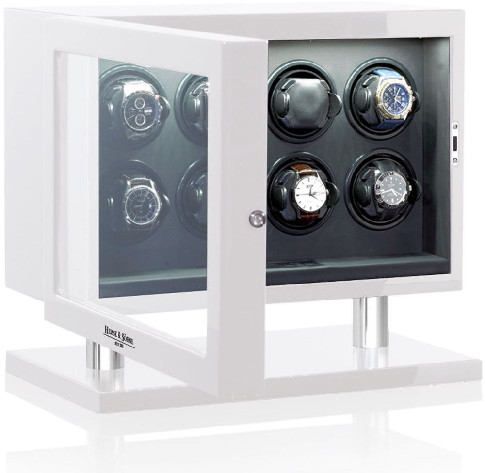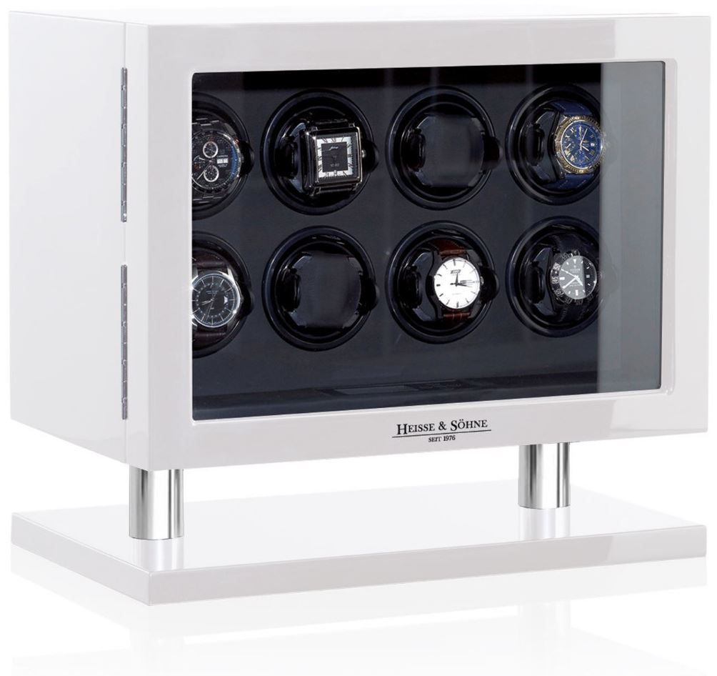 • Funkce a popis:Dřevěný natahovač na 8ks mechanických hodinek s automatickým nátahem, uzamykatelný, bílý piano lesk, černý interiér, LCD ovládací panel, každý z 8 rotorů lze samostatně naprogramovat, vnitřní osvětlení interiéru, denní otáčky 650, 900, 1350 a 1800, volba otáčení doprava, doleva i oboustranně, rozměr 43x39x27cm