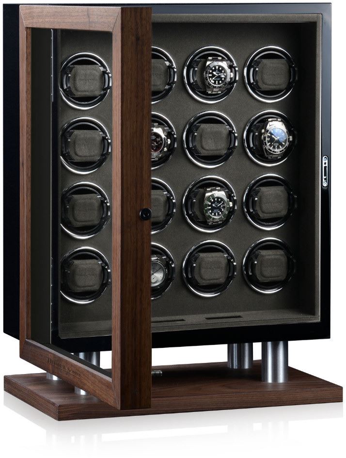 • Funkce a popis:Dřevěný natahovač na 16 hodinek, hnědý v kombinaci s črenou barvou, LCD display pro příjemné ovládání, materiál interiéru je velur, každý rotor lze samostatně naprogramovat, otáčení lze nastavit po směru ručiček, proti směru a také oboustranně, volba počtu denních otáček od 450 až 1500, vnitřní LED osvětlení které lze i zcela vypnout, mód "sleep phase", natahovač je uzamykatelný, adaptér je součástí balení, váha 15kg