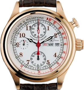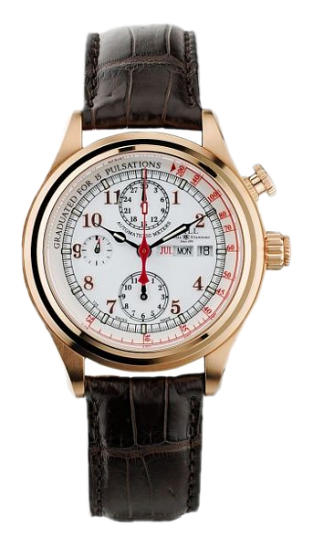 • Funkce a popis:Čas, datum, den v týdnu, pulsometr, strojek Ball calibre RR1403 (základ swiss Eta Valjoux 7750) - rezerva chodu 48 hodin(+ ruční nátah), 28.800 polokmitů setrvačky za hodinu - přesnost chodu 3 - 4 vteřiny denně, 25 kamenových uložení, lapované zdobené základny strojku + modřené šroubky. V číselníku jsou indexy a ručičky plněny svítícím plynem, který má schopnost svítit nonstop 25 let. Díky tomu uvidíte kdykoliv a kdekoliv ve tmě, jaký je správný čas. Průhledné zadní víčko pro náhled na strojek.