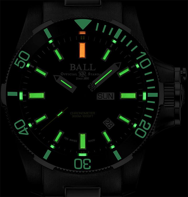 • Funkce a popis:Čas, datum, den v týdnu, strojek Ball calibre RR1102-C (základ swiss Eta 2824) - rezerva chodu 38 hodin (+ ruční nátah), 28.800 polokmitů setrvačky za hodinu, COSC certifikát přesnosti strojku - přesnost chodu 0 - 3 vteřiny / den, 26 kamenových uložení, patentovaný systém ochrany korunky, otočná luneta,  Amortiser® patentovaný systém ochrany strojku proti nárazům = odolnost nárazu 7 500 Gs = možný pád hodinek až z jednoho a půl metru bez poškození strojku (hodinky jsou tímto zároveň odolné nárazům identické síly), velmi odolné vůči magnetickému poli 80 000 A/m (za antimagnetické hodinky už lze považovat hodinky s 4 800 A/m). V číselníku jsou indexy a ručičky plněny svítícím plynem, který má schopnost svítit nonstop 25 let. Díky tomu uvidíte kdykoliv a kdekoliv ve tmě správný čas. Pouzdro je vyrobeno z velmi tvrdého titanu.