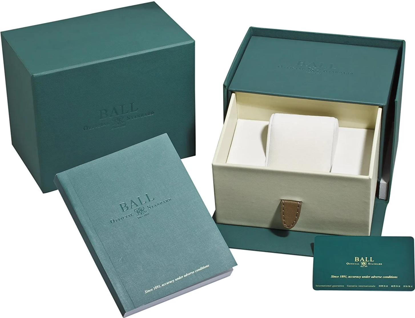 • Funkce a popis:Čas, datum, strojek Ball calibre RRM7309-C in-house (strojek vlastní výroby) - rezerva chodu 80 hodin, automatický nátah (pohybem ruky) + ruční nátah (hodinky lze natáhnout i mechanicky - ručně), 28.800 polokmitů setrvačky za hodinu, COSC certifikát přesnosti strojku - přesnost chodu 0 - 3 vteřiny/den, 25 kamenových uložení, šroubovací vodotěsná korunka, odolnost vůči magnetickému poli 4 800 A/m (takto označené hodinky už se označují jako antimagnetické, odolávají běžnému magnetickému poli), odolnost nárazu 5 000 Gs = možný pád hodinek až z jednoho metru bez poškození strojku (hodinky jsou tímto zároveň odolné podobným nárazům identické síly), články náramku jsou spojovány šroubky (velmi kvalitní spojení), průhledné (prosklené) zadní víčko hodinek pro náhled na strojek, v číselníku jsou indexy a ručičky plněny mikroampulkami se svítícím plynem (tritium) - díky tomu uvidíte kdykoliv a kdekoliv ve tmě, jaký je správný čas (svítivost vydrží nonstop 25 let, poté Ball vymění nový číselník a ručičky na dalších 25 let svítivosti)