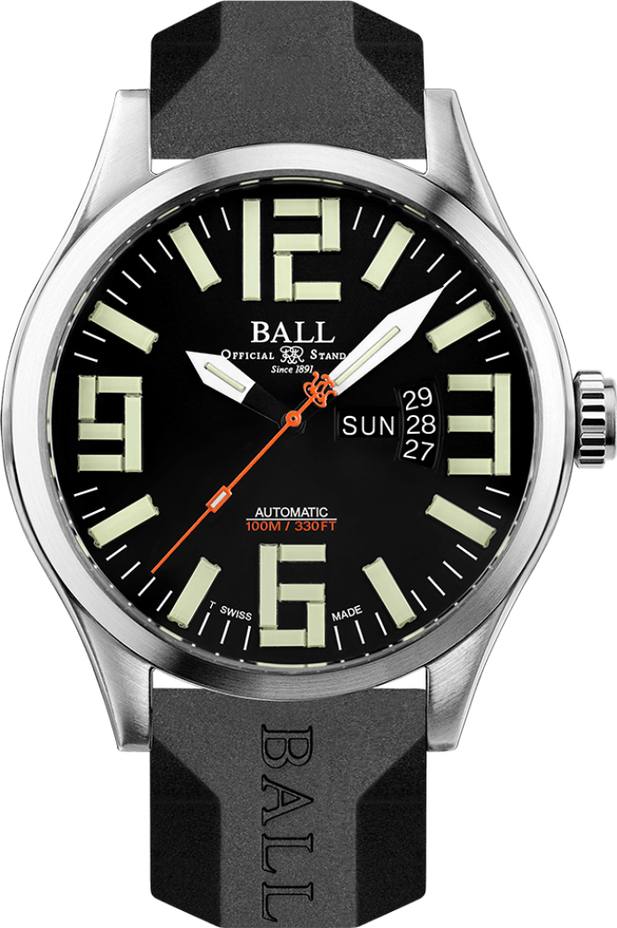 • Funkce a popis:Čas, datum, den v týdnu, strojek Ball calibre RR1102 (základ swiss Eta 2824) - rezerva chodu 38 hodin, automatický nátah (pohybem ruky) + ruční nátah (hodinky lze natáhnout i mechanicky - ručně), 28.800 polokmitů setrvačky za hodinu, COSC certifikát přesnosti strojku - přesnost chodu 0 - 3 vteřiny/den, 25 kamenových uložení, odolnost vůči magnetickému poli 4 800 A/m (takto označené hodinky už se označují jako antimagnetické, odolávají běžnému magnetickému poli), odolnost nárazu 5 000 Gs = možný pád hodinek až z jednoho metru bez poškození strojku (hodinky jsou tímto zároveň odolné podobným nárazům identické síly). V číselníku jsou indexy a ručičky plněny mikroampulkami se svítícím plynem (tritium), který má schopnost svítit nonstop 25 let. Díky tomu uvidíte kdykoliv a kdekoliv ve tmě, jaký je správný čas. Zapínání pásku - trnová spona