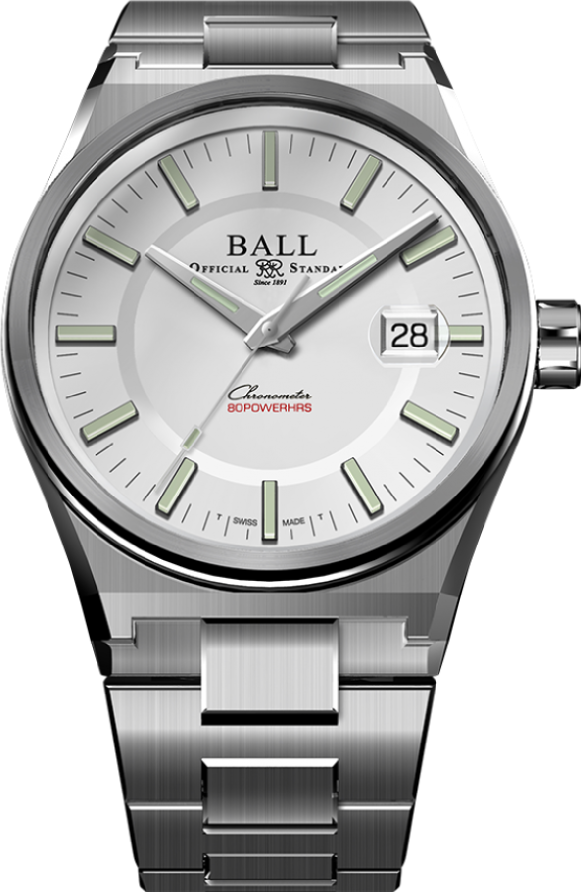 • Funkce a popis:Čas, datum, zvětšovací lupa nad datumem, materiál pouzdra a kovového tahu těchto hodinek je velmi tvrdá ocel označením 904L (vynikající odolnost proti poškrábání, rzi, korozi a kyselinám), která je podstatně tvrdší než ocel 316L (z oceli 316L se vyrábí většina pouzder a kovových tahů na hodinky světové výroby), strojek Ball calibre RRM7309-C in-house (strojek vlastní výroby) - rezerva chodu 80 hodin, automatický nátah (pohybem ruky) + ruční nátah (hodinky lze natáhnout i mechanicky - ručně), 28.800 polokmitů setrvačky za hodinu, COSC certifikát přesnosti strojku - přesnost chodu 0 - 3 vteřiny/den, 25 kamenových uložení, šroubovací vodotěsná korunka, odolnost vůči magnetickému poli 4 800 A/m (takto označené hodinky už se označují jako antimagnetické, odolávají běžnému magnetickému poli), odolnost nárazu 5 000 Gs = možný pád hodinek až z jednoho metru bez poškození strojku (hodinky jsou tímto zároveň odolné podobným nárazům identické síly), články náramku jsou spojovány šroubky (velmi kvalitní spojení). V číselníku jsou indexy a ručičky plněny mikroampulkami se svítícím plynem, který má schopnost svítit nonstop 25 let. Díky tomu uvidíte kdykoliv a kdekoliv ve tmě, jaký je správný čas