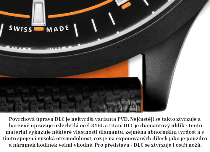 V tabulce tvrdosti materiálů máme ale i povrchové úpravy kovů. V dnešní době existují již natolik pokročilé technologie, že není problém nanášet na kovy povrchové úpravy podstatně tvrdší než základní kov samotný. Jednou z nejznámějších povrchových úprav v hodinářském odvětví velmi často používanou je PVD. Hned na druhém místě co se týče tvrdosti je Super Hard Coating, kterou používá firma Seiko. Ještě o něco tvrdší povrchovou úpravu používá Citizen - ta nazývá se Duratec. A jedna z nejtvrdších povrchových úprav je systém DLC (Diamond Like Carbon), který má ovšem široké rozpětí tvrdosti, dle technologického postupu výroby tohoto povlaku. Obecně ale lze říci, že v hodinářském průmyslu se nejčastěji používá DLC ve tvrdosti kolem 1.800 Vickers.