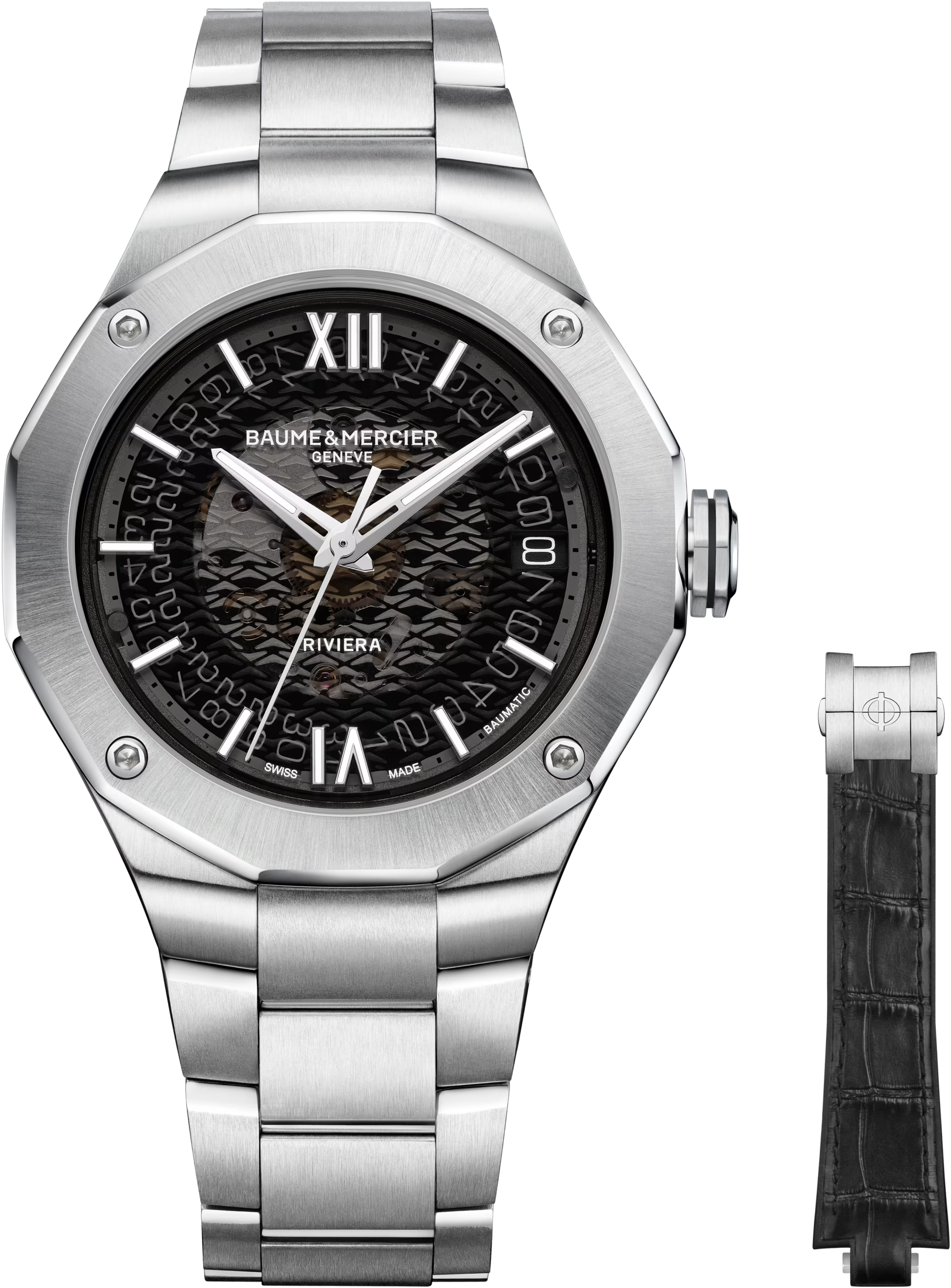 Pánské hodinky Riviera Baumatic M0A10748, poháněná prestižním výrobním kalibrem Baumatic, jsou špičkové švýcarské hodinky pro všechny Vaše cesty. Jejich průhledný kouřově šedý safírový číselník, jejich vyměnitelný kovový náramek a otevřené zadní pouzdro dotvářejí sportovní vzhled těchto švýcarských hodinek. V balení je dodáván kožený pásek z aligátora (na vnitřní straně pogumovaný pro delší výdrž.