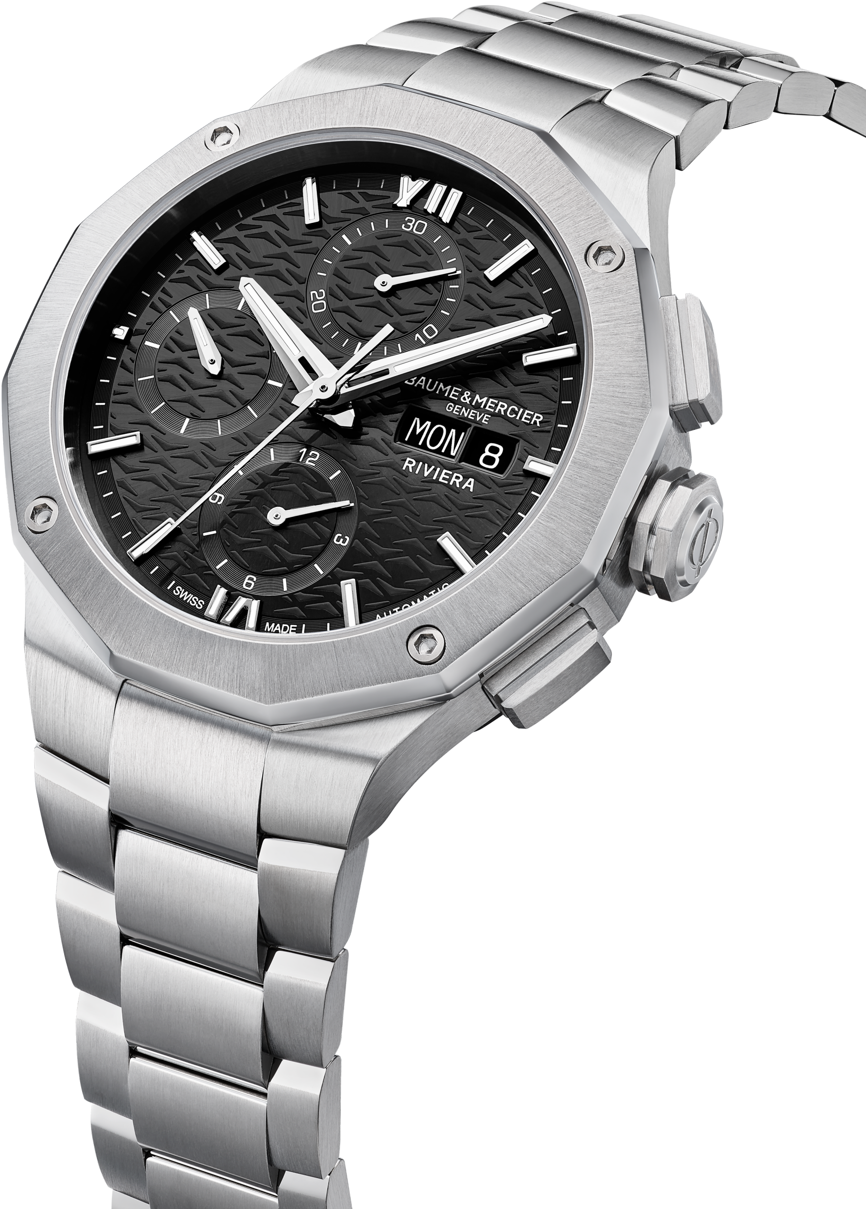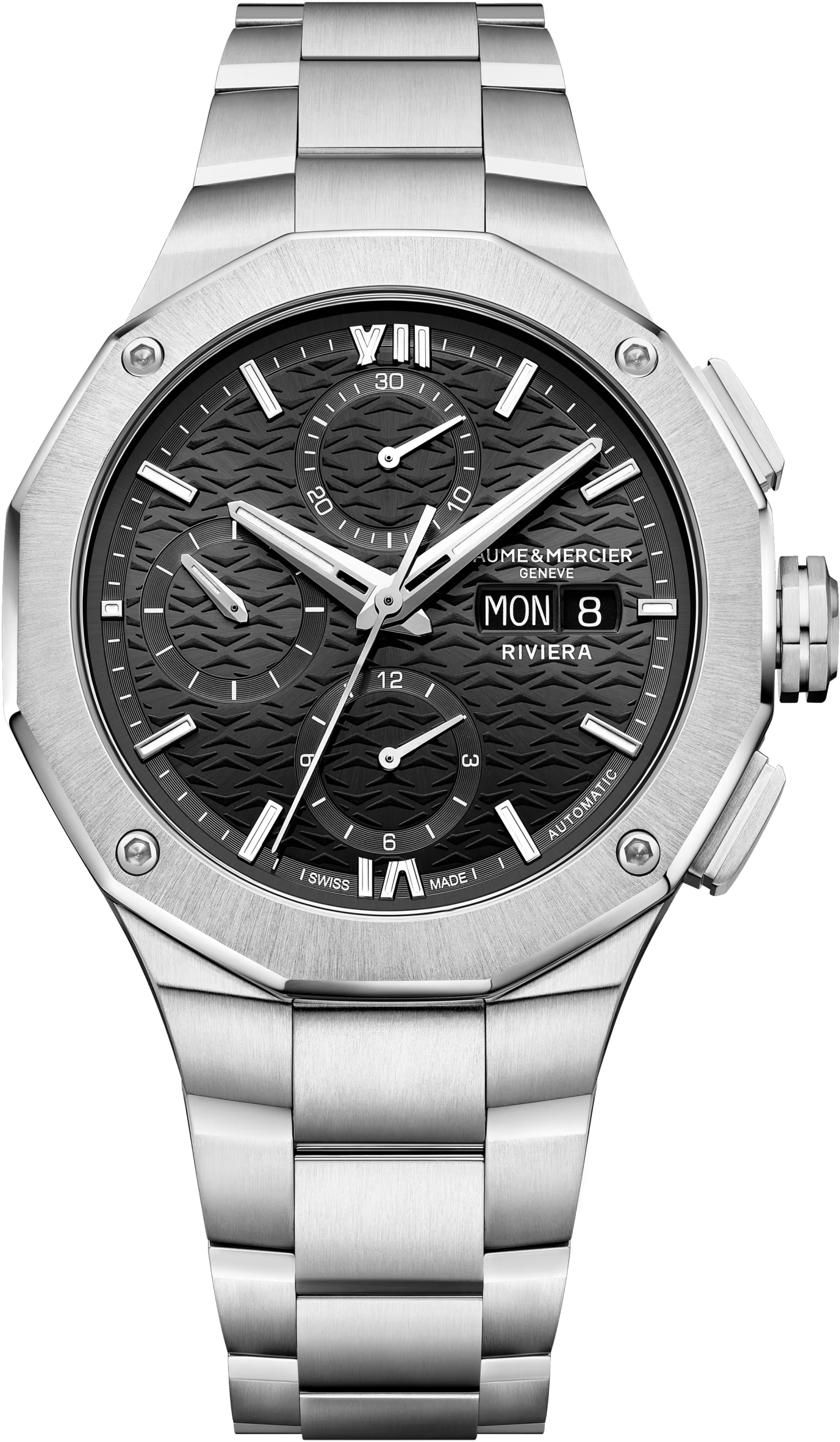 Tyto hodinky Baume & Mercier Riviera jsou vybaveny automatickým švýcarským strojkem Sellita 500 (základ Valjoux 7750) a ztělesňují klasický nadčasový design s moderními prvky.