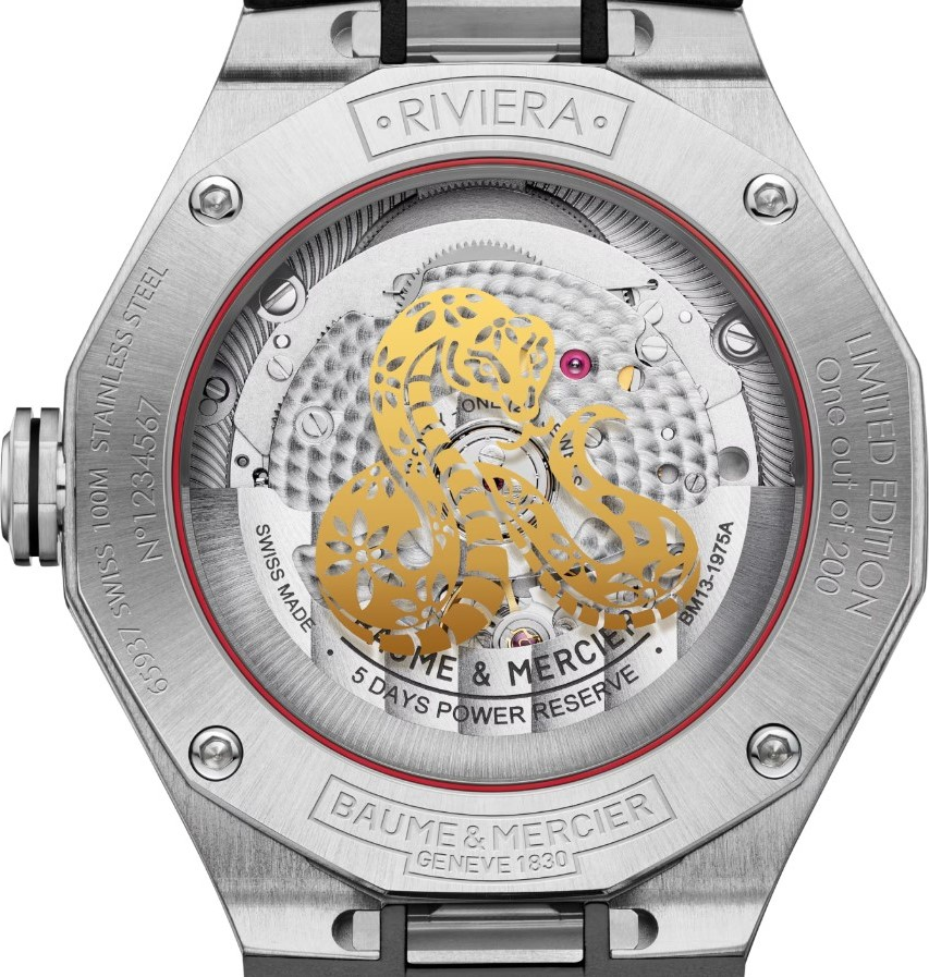 Baume & Mercier Riviera Chinese New Year Snake Limited Edition M0A10785 jsou pánské švýcarské hodinky, které spojují manufacture strojek Baumatic, limitované provedení inspirované čínským Novým rokem a mimořádně osobitý kouřově šedý safírový číselník. Tento model osloví muže, kteří chtějí výjimečnou Riviera s výrazným příběhem, technickou hloubkou a exkluzivním charakterem, ale stále s vysokou každodenní nositelností. Kolekce Riviera sama o sobě pracuje s odvážným tvarem a silnou ...