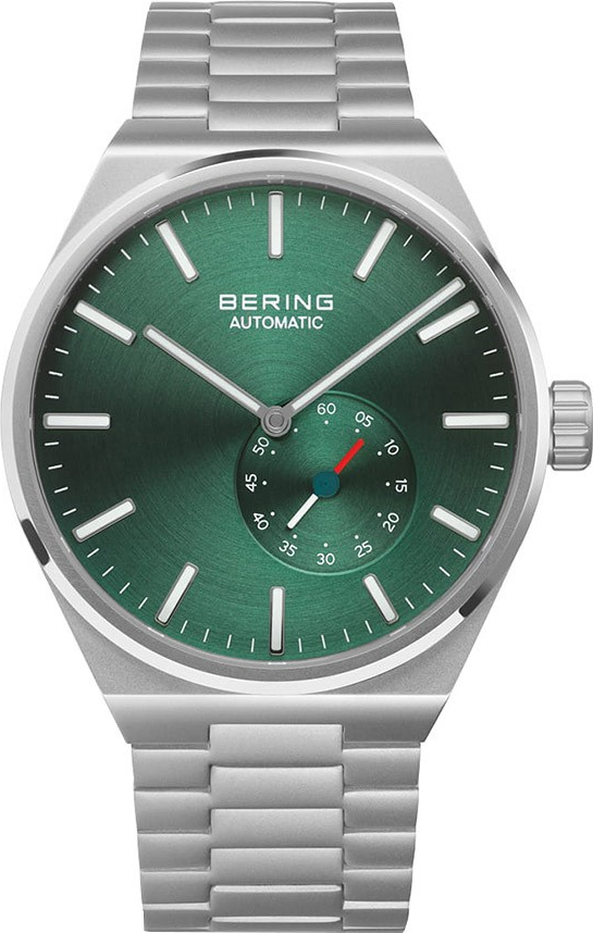 • Funkce a popis:Čas, mimostředná vtěřinová ručka, mechanický strojek s automatickým nátahem s rezervou chodu 42 hodin, luminiscence na ručkách a indexech, náhled na strojek skrz zadní víčko hodinek