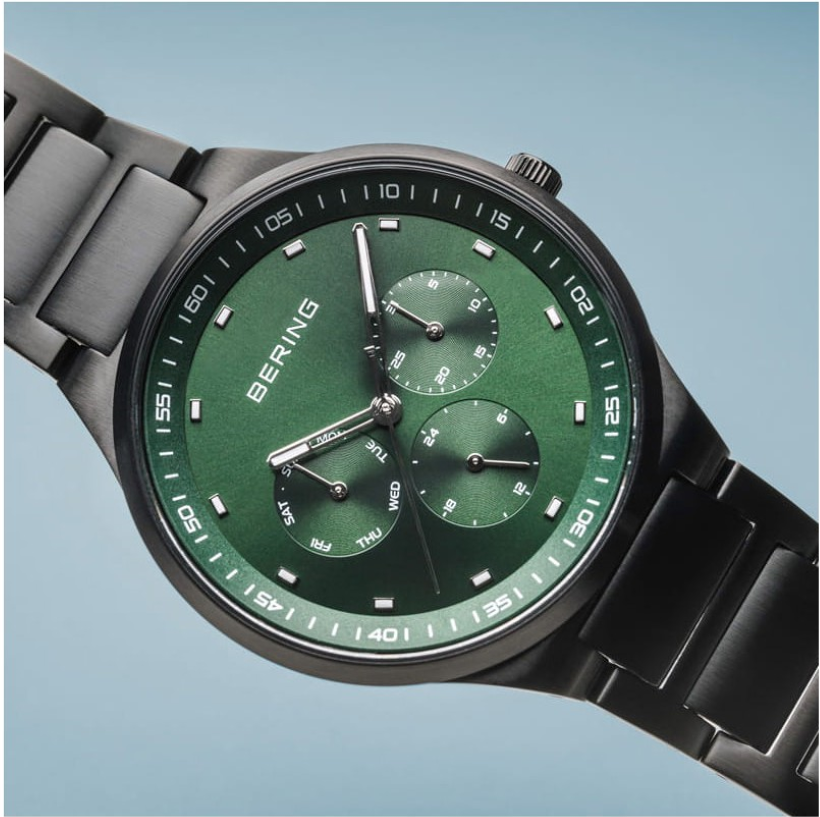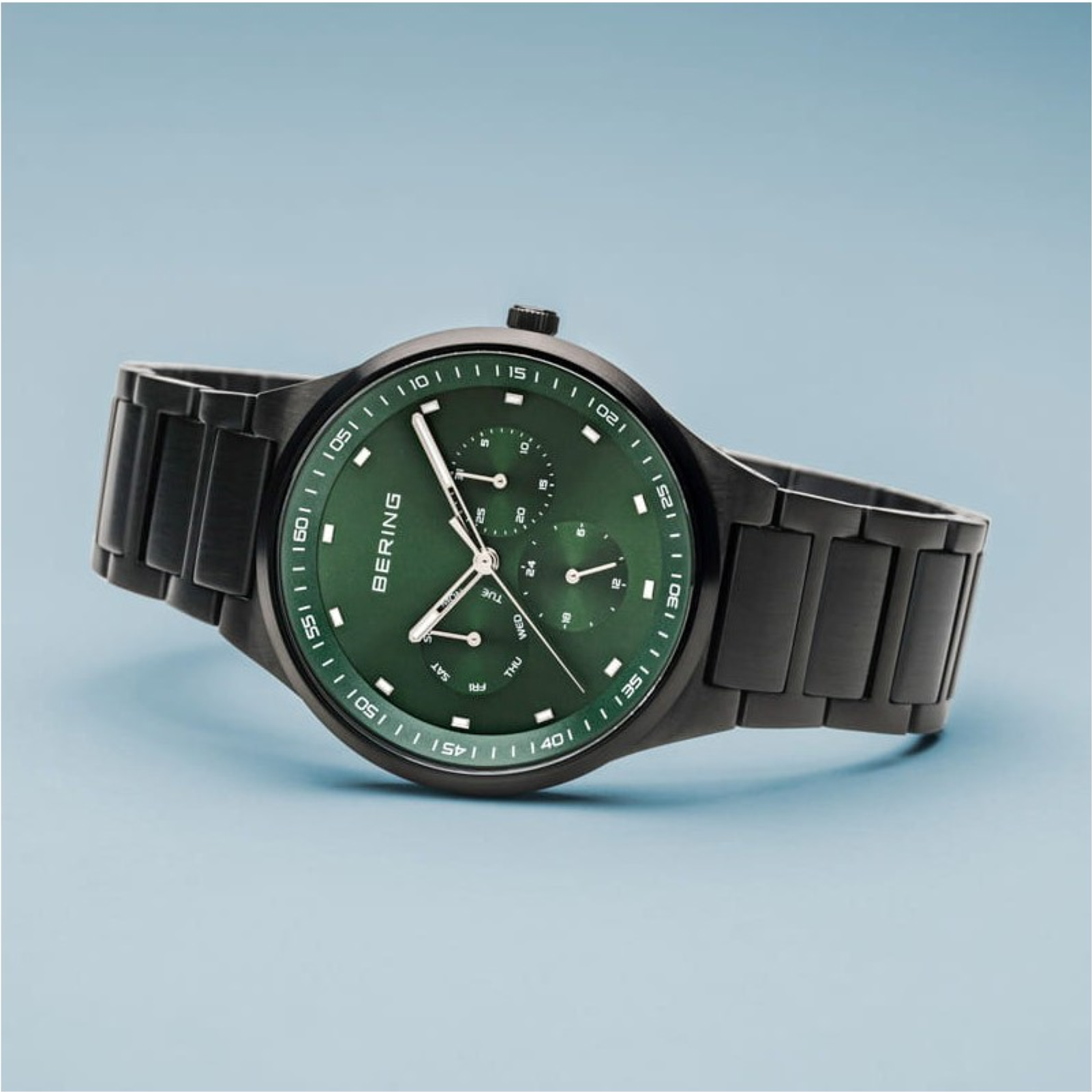• Funkce a popis:Čas, datum, den v týdnu, režim 12/24, strojek quartz = přesnost chodu do 0,5 vteřiny denně, ručičky a indexy jsou opatřeny tenkou vrstvou luminiscenčního materiálu (materiál, který po krátkém nasvícení dlouhou dobu svítí, což je praktické za šera a v noci)