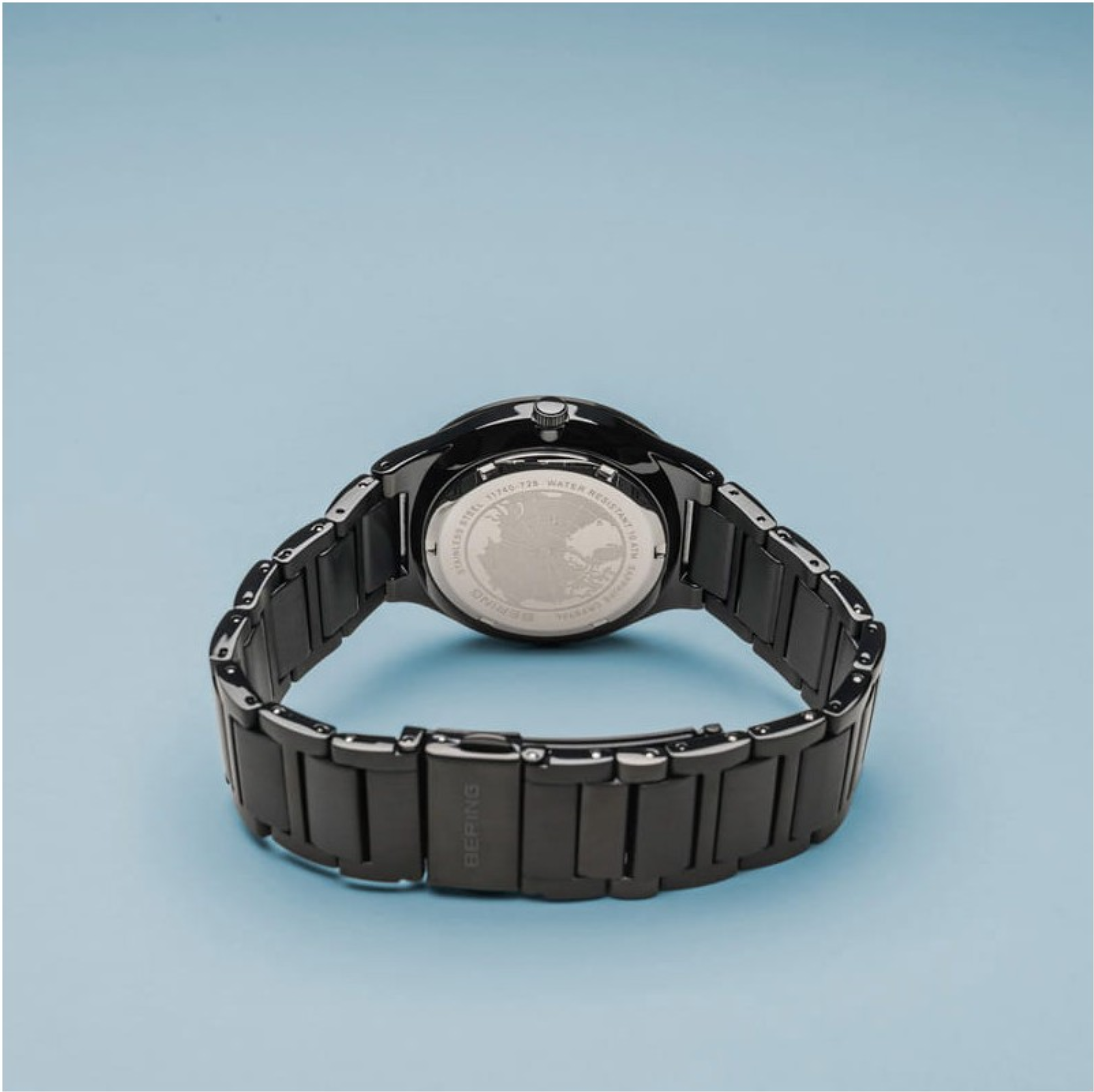 • 36 měsíců záruky + 12 měsíců pozáruční servis zdarma u nás na prodejně (Tím máte na 48 měsíců o hodinky postaráno). Zde více o životnosti hodinek a podmínkách bezplatného pozáručního servisu  → .Životnost hodinek je určena přímo životností strojku. Automatické strojky mají životnost při pravidelném servisu 1x za 7 - 10 let prakticky neomezenou, lze uvádět, že automatické mechanické strojky jsou generační záležitost. Quartzové strojky jsou závislé na životnosti integrovaného obvodu, který je cca. 20 - 25 let (poté lze strojek vyměnit). Pokud se závada na hodinkách neobjeví do prvního půl roku nošení, hodinky jsou vyrobené v pořádku a délka záruky bývá v naprosté většině formalita. Náš pozáruční servis zdarma se vztahuje na případné závady strojku - na preventivní čištění a mazání v případě správné funkčnosti strojku se pozáruční servis nevztahuje (zákazník může chtít vyčistit a namazat strojek ve vlastním zájmu). Automatické hodinky čeká první celkové vyčištění a namazání strojku novými oleji a u quartzových hodinek první výměna baterie. Toto může nastat až za oněch cca. 8 let, ale také to může nastat v prvních letech nošení, jelikož hodinky (strojek), než jsou zakoupeny uživatelem, nějakou dobu na užívání čekají a po tuto dobu oleje stárnou. Proto máme prodloužený bezplatný servis, abyste v případě, že se toto bude týkat Vašich hodinek (hodinky zastavují nebo extrémě pozdí), nemuseli za vyčištění, namazání a vyregulování na přesný čas platit (např. u cca. 6 hodinek z 10 nových prodaných je potřeba v prvních 5 letech vyčistit krokové ústrojí, což stojí kolem 2 500 Kč a u nás to máte zdarma. Čisté krokové ústrojí = přesný chod hodinek). V případě quartzových hodinek máte po celou dobu nošení hodinek výměnu baterie zdarma. V případě quartzových hodinek máte po celou dobu nošení hodinek výměnu baterie zdarma. Pro hodinky nabíjených světlem (Solár, Eco-drive) se tato služba nevztahuje (akumulátory v těchto systémech mají ale nepoměrně delší životnost oproti běžným bateriím).