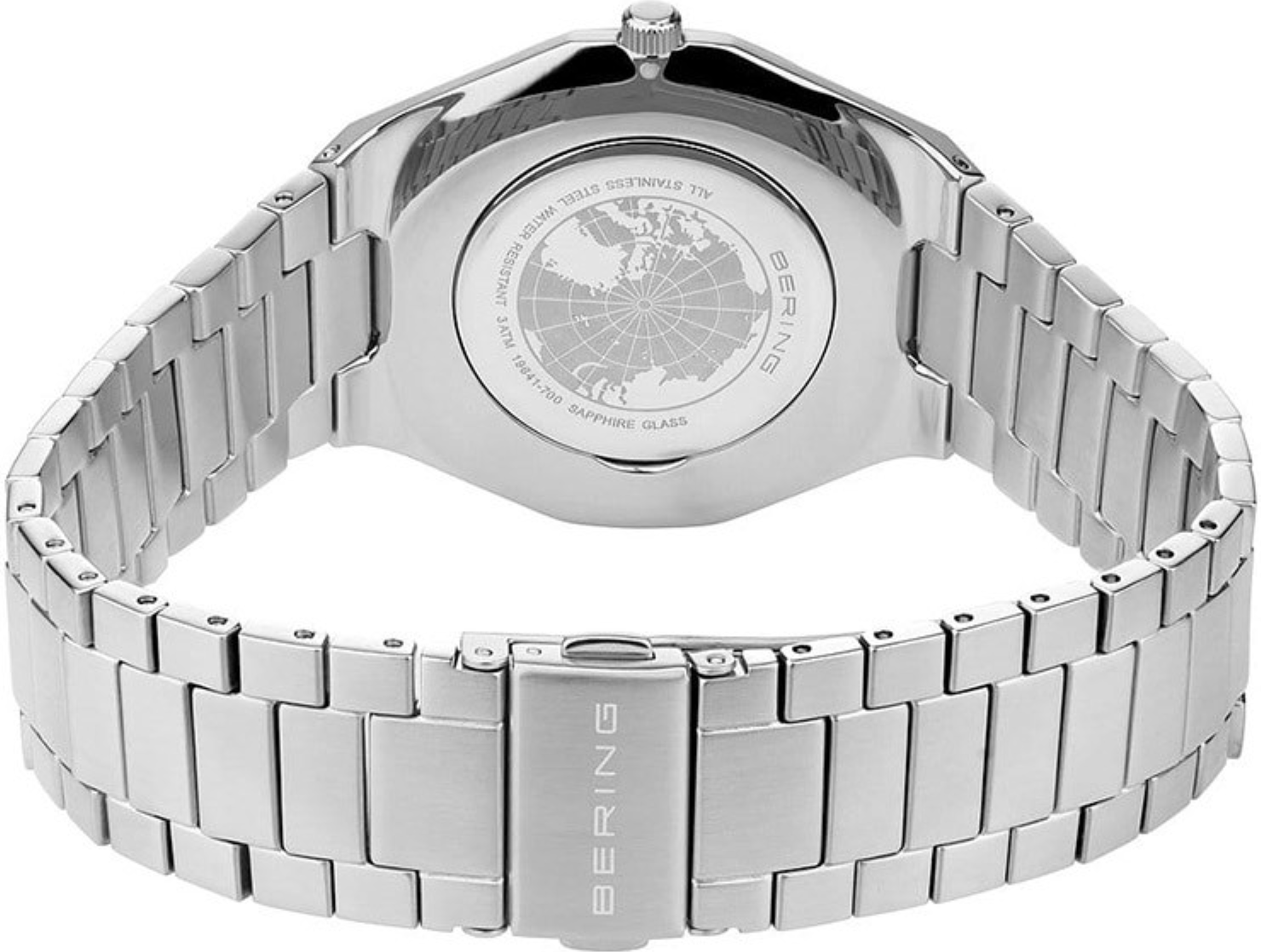 • 36 měsíců záruky + 12 měsíců pozáruční servis zdarma u nás na prodejně (Tím máte na 48 měsíců o hodinky postaráno). Zde více o životnosti hodinek a podmínkách bezplatného pozáručního servisu  → .Životnost hodinek je určena přímo životností strojku. Automatické strojky mají životnost při pravidelném servisu 1x za 7 - 10 let prakticky neomezenou, lze uvádět, že automatické mechanické strojky jsou generační záležitost. Quartzové strojky jsou závislé na životnosti integrovaného obvodu, který je cca. 20 - 25 let (poté lze strojek vyměnit). Pokud se závada na hodinkách neobjeví do prvního půl roku nošení, hodinky jsou vyrobené v pořádku a délka záruky bývá v naprosté většině formalita. Náš pozáruční servis zdarma se vztahuje na případné závady strojku - na preventivní čištění a mazání v případě správné funkčnosti strojku se pozáruční servis nevztahuje (zákazník může chtít vyčistit a namazat strojek ve vlastním zájmu). Automatické hodinky čeká první celkové vyčištění a namazání strojku novými oleji a u quartzových hodinek první výměna baterie. Toto může nastat až za oněch cca. 8 let, ale také to může nastat v prvních letech nošení, jelikož hodinky (strojek), než jsou zakoupeny uživatelem, nějakou dobu na užívání čekají a po tuto dobu oleje stárnou. Proto máme prodloužený bezplatný servis, abyste v případě, že se toto bude týkat Vašich hodinek (hodinky zastavují nebo extrémě pozdí), nemuseli za vyčištění, namazání a vyregulování na přesný čas platit (např. u cca. 6 hodinek z 10 nových prodaných je potřeba v prvních 5 letech vyčistit krokové ústrojí, což stojí kolem 2 500 Kč a u nás to máte zdarma. Čisté krokové ústrojí = přesný chod hodinek). V případě quartzových hodinek máte po celou dobu nošení hodinek výměnu baterie zdarma. V případě quartzových hodinek máte po celou dobu nošení hodinek výměnu baterie zdarma. Pro hodinky nabíjených světlem (Solár, Eco-drive) se tato služba nevztahuje (akumulátory v těchto systémech mají ale nepoměrně delší životnost oproti běžným bateriím).