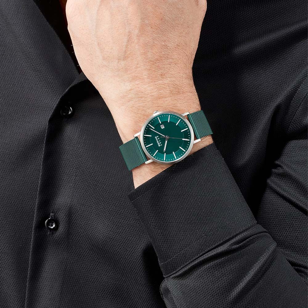 Quartz znamená latinsky krystal. Je tedy zřejmé, že hodinky nemohou být poháněny krystalem - jsou jím, jak již bylo zmíněno výše, řízeny pro maximální přesnost chodu. Krystal je Alfa a Omega přesnosti hodinek - respektive jeho kvalita. Čím je krystal kvalitnější, tím lépe usměrňuje frekvenci kmitů a impulsy jdoucí k magnetickému rotoru jsou stabilnější a chod hodinek je poté přesnější. Kvalita krystalu není úplně směrodatná pouze u hodinek rádiem řízených či hodinek řízených signálem GPS, jelikož tyto hodinky jsou každý den seřizovány signálem pro naprosto přesný čas (obvykle 2x denně). Časový rozdíl, který může vzniknout v mezidobí příjmu signálu je díky dnešním kvalitním krystalům tak nepatrný (cca. setiny vteřiny), že není možné tuto diferenci okem zaznamenat. U hodinek řízených krystalem je pohon zajišťován baterií - napájecím článkem nebo akumulátorem, který se dobíjí např. světlem. Baterie v hodinkách vydrží - dle typu elektroniky a celkově sestrojení strojku - 2 - 10 let. Je důležité vědět, že nejmenší spotřebu napájecího článku (baterie) mají hodinky digitální. Je to proto, protože zde není žádný velký spotřební přísun energie - nasvicuje se zde "pouze" tekutý krystal. Naopak největší spotřebu mají quartzové hodinky v případě zapnutí ručkového chronografu, kdy spolu s časem nám hodinky stopují. Zde je odběr baterie podstatně vyšší, nedoporučuje se tedy mít stále chronograf akční - pouze... (číst více)