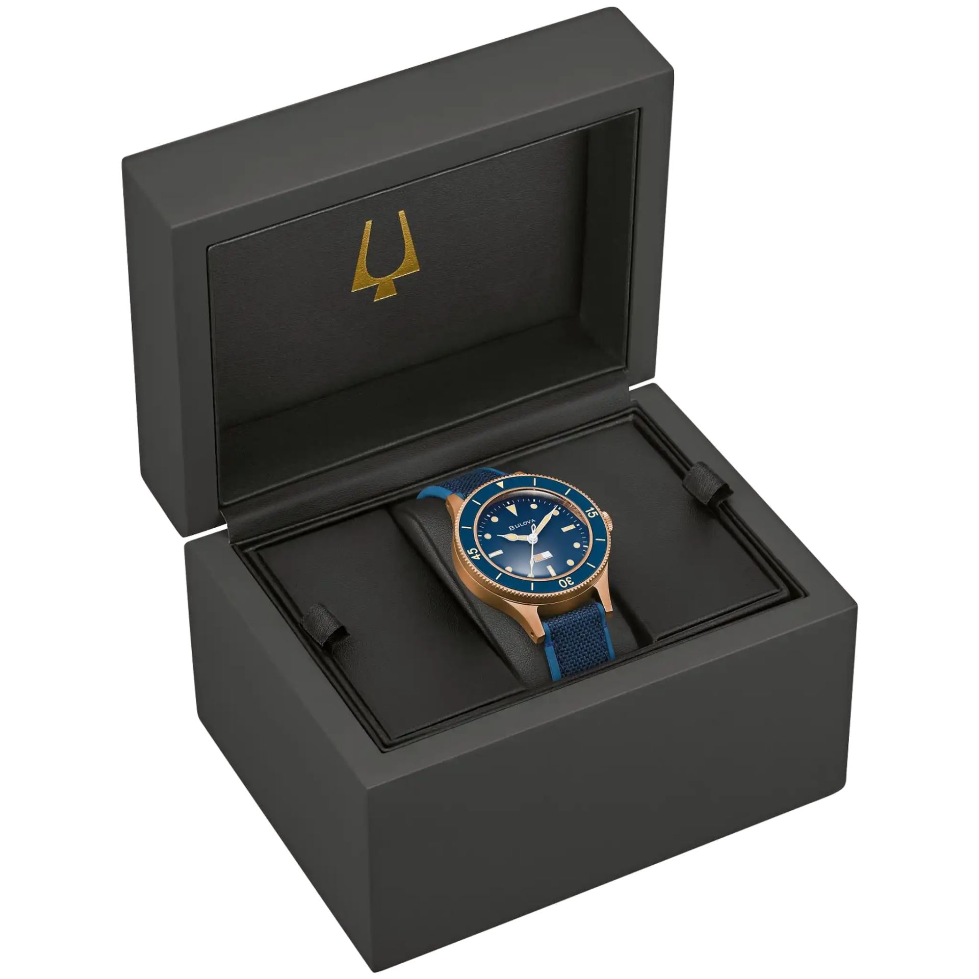 Hodinky Bulova Mil-Ships 98A325 Bronze 150th Anniversary představují mimořádnou speciální edici, která se s hlubokým respektem vrací k bohaté vojenské historii značky a zároveň oslavuje 150 let nepřetržité hodinářské tradice Bulova. Inspirací se stal vzácný prototyp potápěčských hodinek MIL-SHIPS-W-2181 z roku 1957