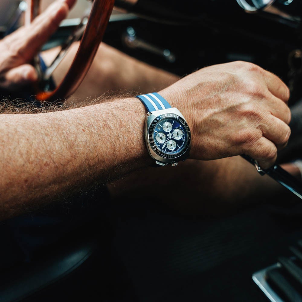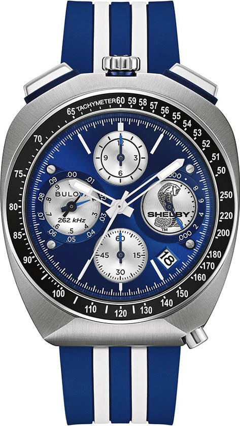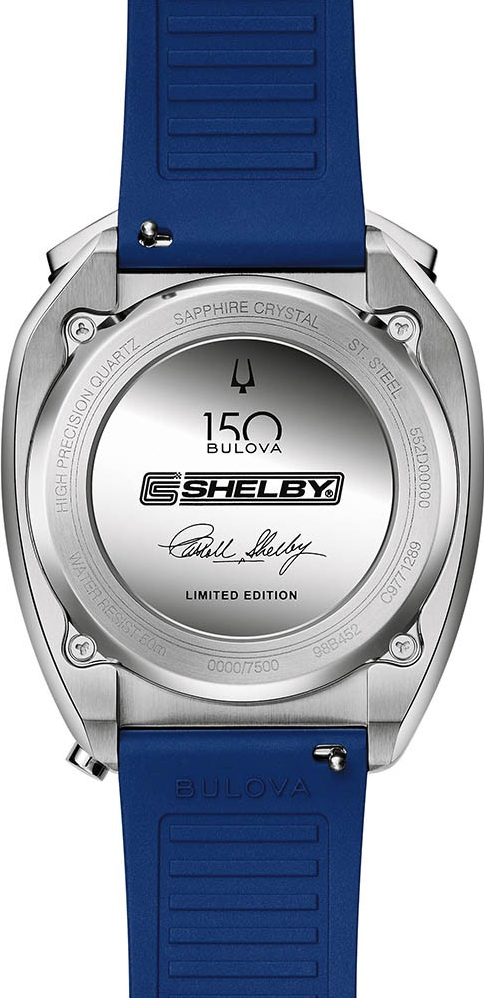 Hodinky Bulova SHELBY® Racer Chronograph 98B452 představují poctu legendární osobnosti Carrolla Shelbyho – amerického konstruktéra, závodníka a vizionáře, jehož jméno se stalo synonymem pro výkon, styl a ducha ikonických muscle cars. Tento model vznikl jako součást oslav 150. výročí značky Bulova a přichází v podobě výjimečné limitované edice čítající 7 500 kusů pro celý svět