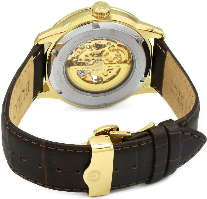 • Funkce a popis:Čas, skeletonový číselník, automatický trojek Japan Miyota 8N26 (21 kamenových uložení), rezerva chodu 42 hodin, polokmity setrvačky 21.600/h = přesnost chodu 4 - 7 vteřin denně, luminiscenční ručky, náhled na strojek přes zadní víčko