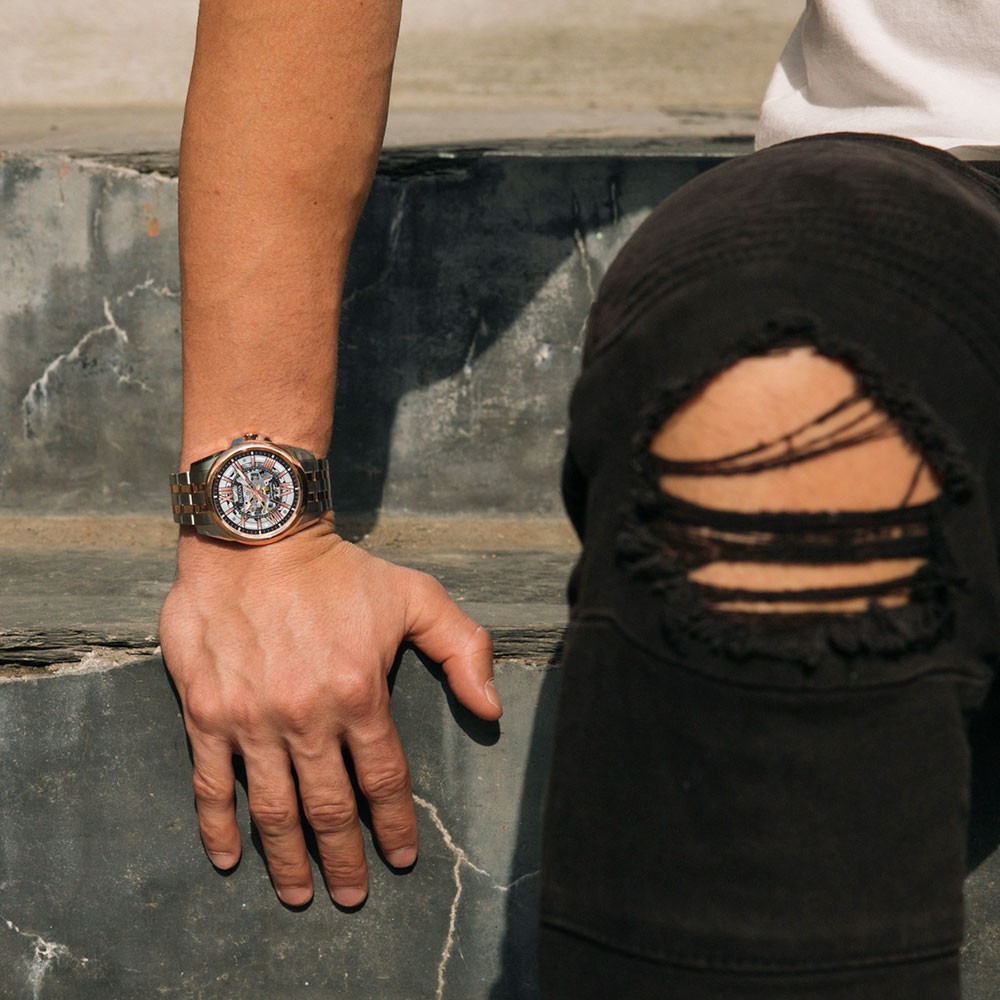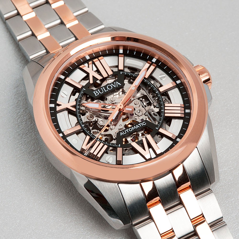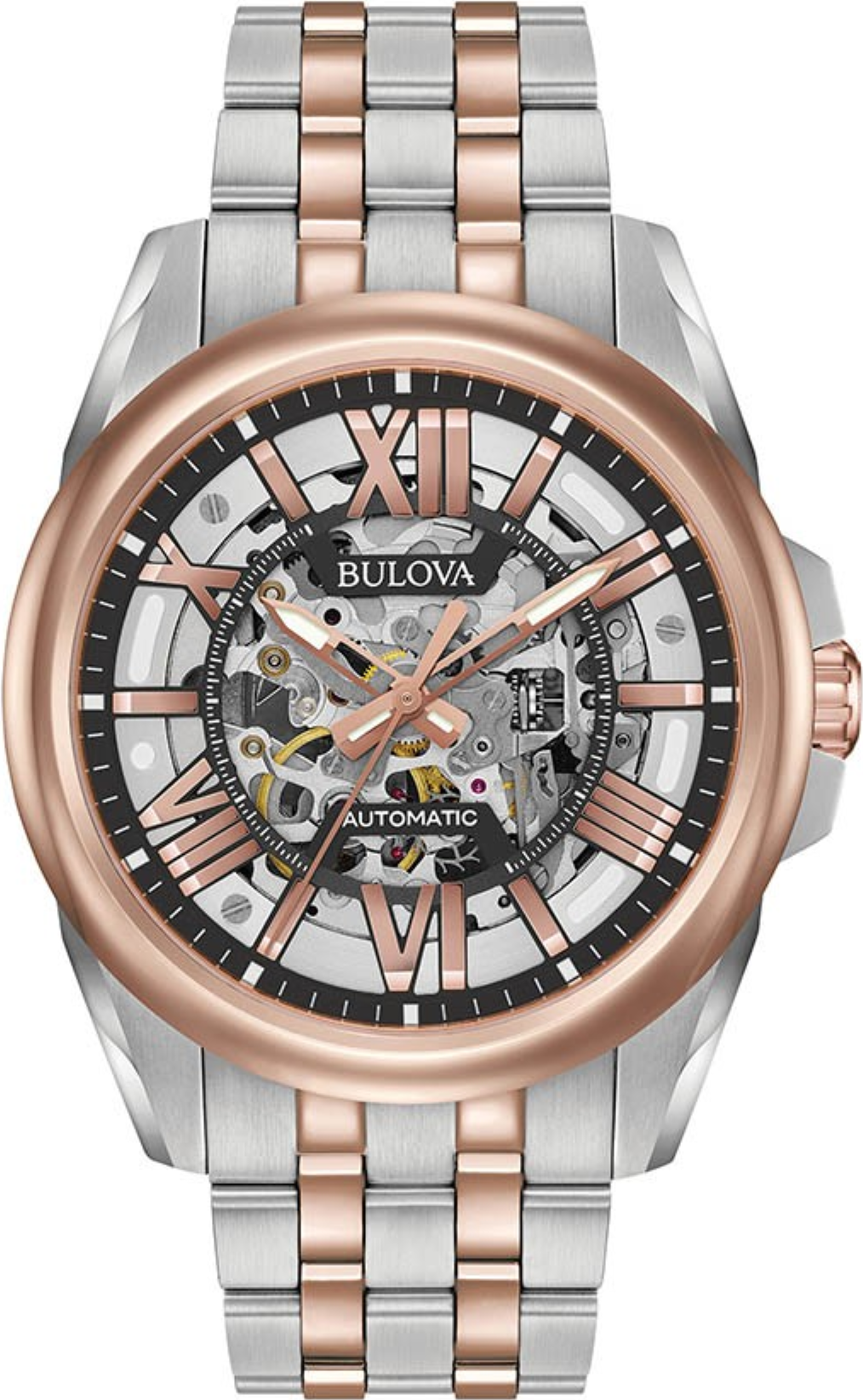 • Funkce a popis:Čas, skeletonový číselník, automatický trojek Japan Miyota 8N24 (21 kamenových uložení), rezerva chodu 42 hodin, polokmity setrvačky 21.600/h = přesnost chodu 4 - 7 vteřin denně, luminiscenční ručky, průhled na strojek skrz zadní víčko