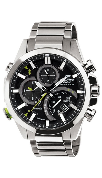 • Funkce a popis:Čas, datum, chronograf = stopky, propojení se smartphony pomocí technologie Bluetooth SMART (seřízení času, přenos dat, příchozí email, upornění při vzdálení se od mobilu), letecký režim, druhá časová zóna nastavitelná pomocí telefonu v jednom z 300 měst zobrazených na mapě, denní alarm, indikace slabé baterie, automatický kalendář do roku 2099, automatický úsporný režim při odložení hodinek za tmy, luminiscenční vrstva Lumibrite