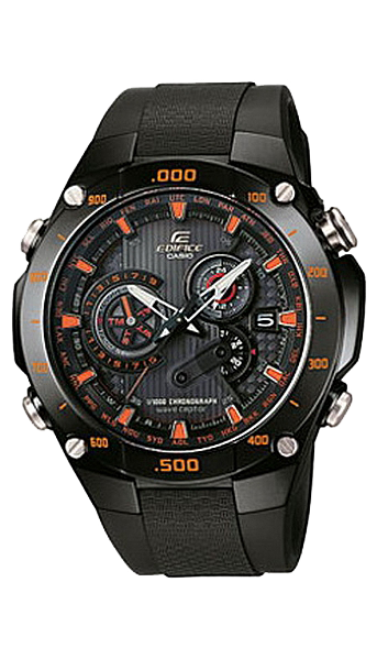• Funkce a popis:Čas, datum, chronograf = stopky s přesností 1/1000 vteřiny max. 24 hodin, automatický kalendář, 24 hodinový ciferník, radiově řízené, světové časy, budík, svítící ručky