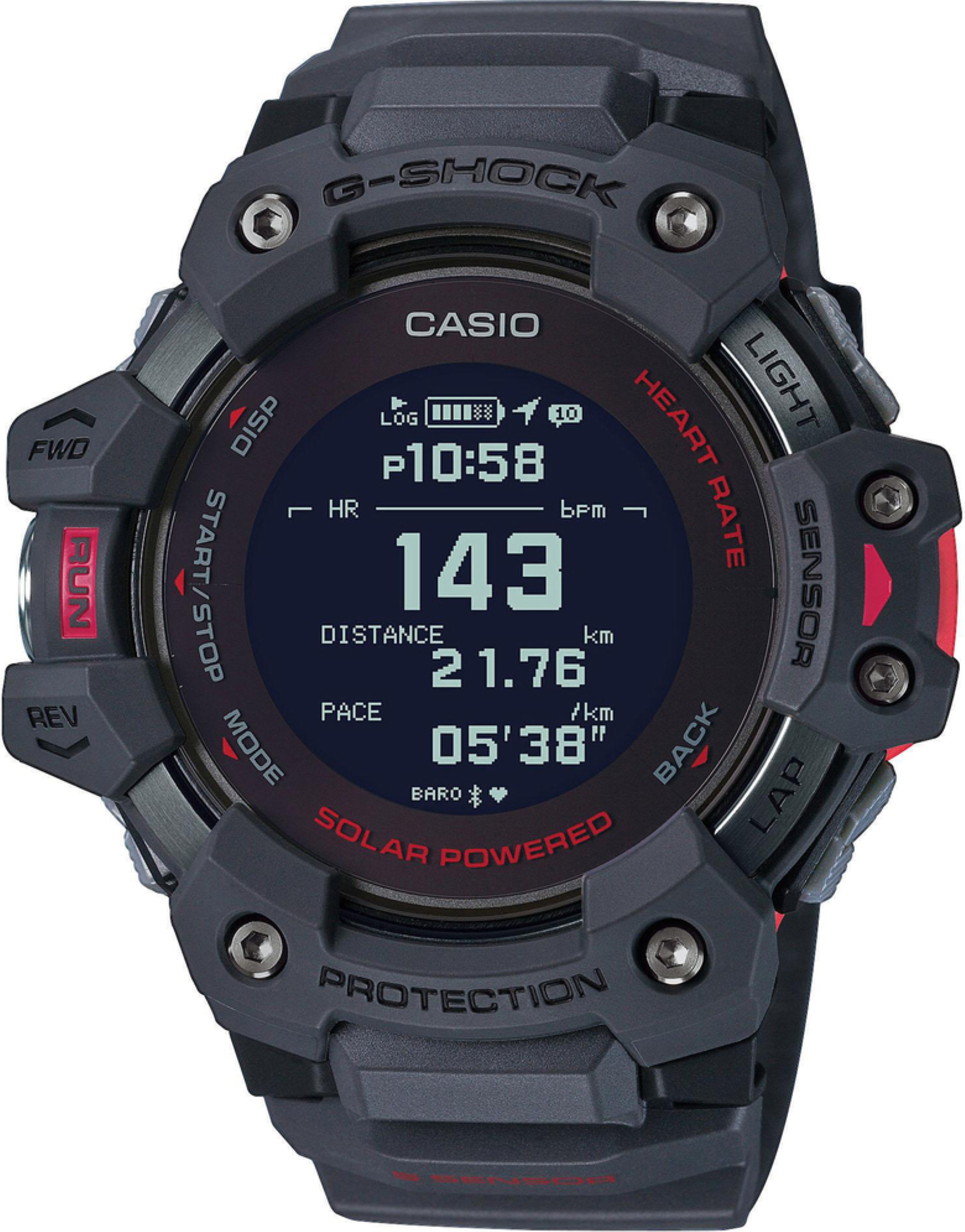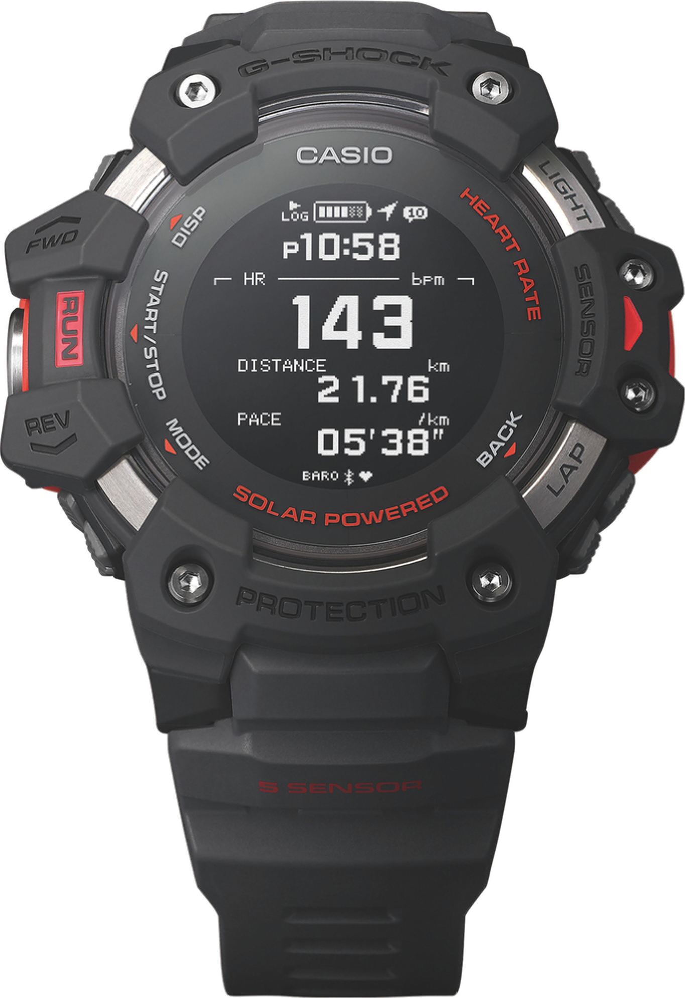 • Funkce a popis:Čas, datum, den v týdnu, USB a solární napájení, 12 měsíců bez použití GPS, 34 měsíců v úsporném režimu, monitoring srdečního tepu, GPS navigace - až 20 protokolů, zobrazení trasy, nastavení cíle ze zaznamenaných bodů, přímá vzdálenost, záznam s informacemi o čase, datu, nadmořské výšce, tlaku, teplotě, pokročilé tréninkové funkce, použití technologie Firstbeat pro analýzu tréninků, hodnoty VO2 max, uložení až 100 tréninkových záznamů, trvalý příjem signálu - výdrž až 14 hodin, přerušovaný příjem signálu - výdrž až 18 hodin, bluetooth pro připojení a synchronizaci s mobilním telefonem, vibrační upozornění, dobře čitelný inverzní displej, kompas, barometr, výškoměr, teploměr, Krokoměr, světové časy, až 4 upozornění a fce. odloženého upozornění, vysoká odolnost vlastní modelům G-Shock, vodotěsnost do 200 m