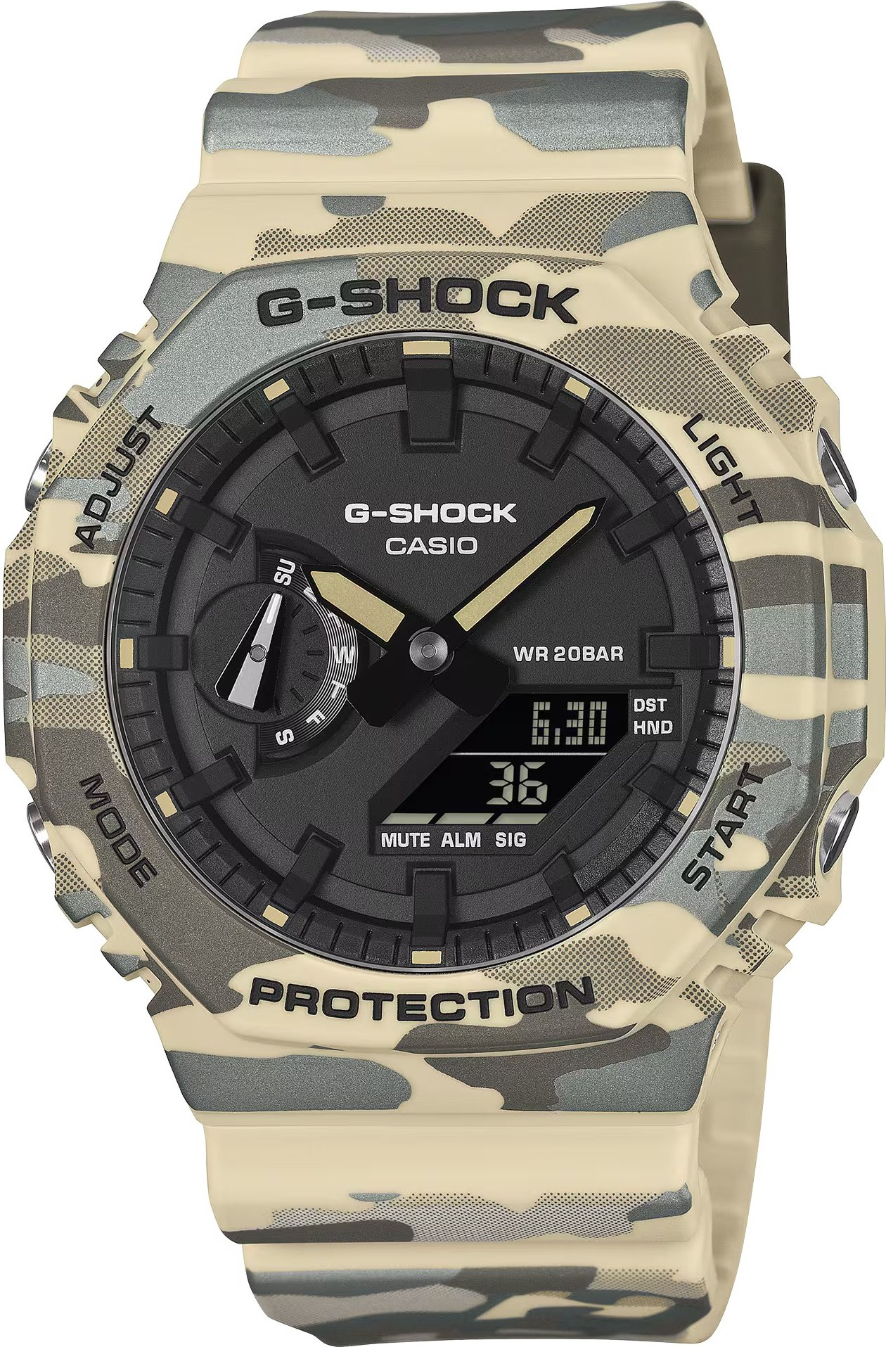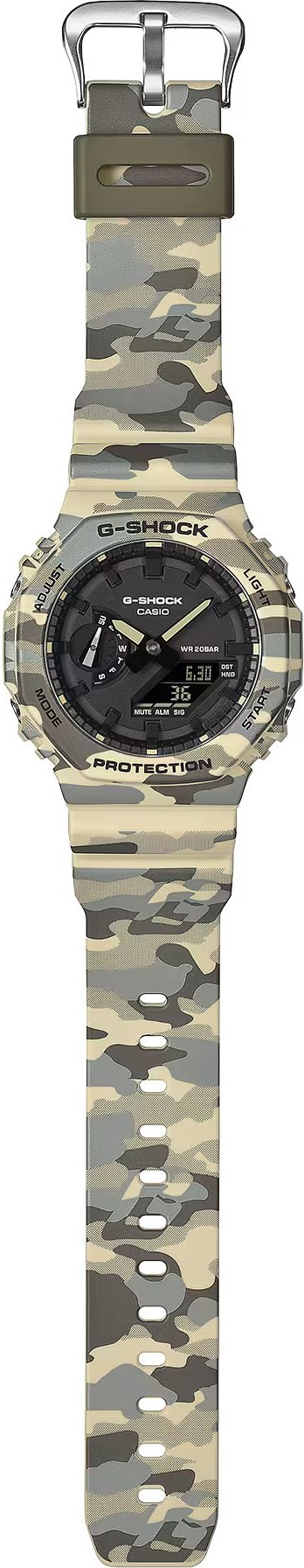 Casio G-SHOCK GA-2100CM-5AER je moderní sportovní model z populární řady GA-2100, který kombinuje ikonický osmiúhelníkový tvar s odolností, na kterou jsou G-Shock hodinky proslulé. Základní dojem tvoří originální kamuflážní motiv v přírodních tónech, který působí civilně i výrazně zároveň - na ruce vynikne, ale nepůsobí přehnaně. Díky analogově-digitálnímu zobrazení získáte rychlý přehled o čase i funkcích, což z těchto hodinek dělá praktickou volbu pro každodenní ...