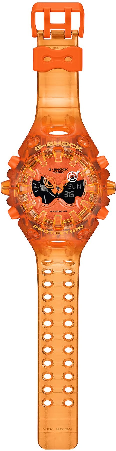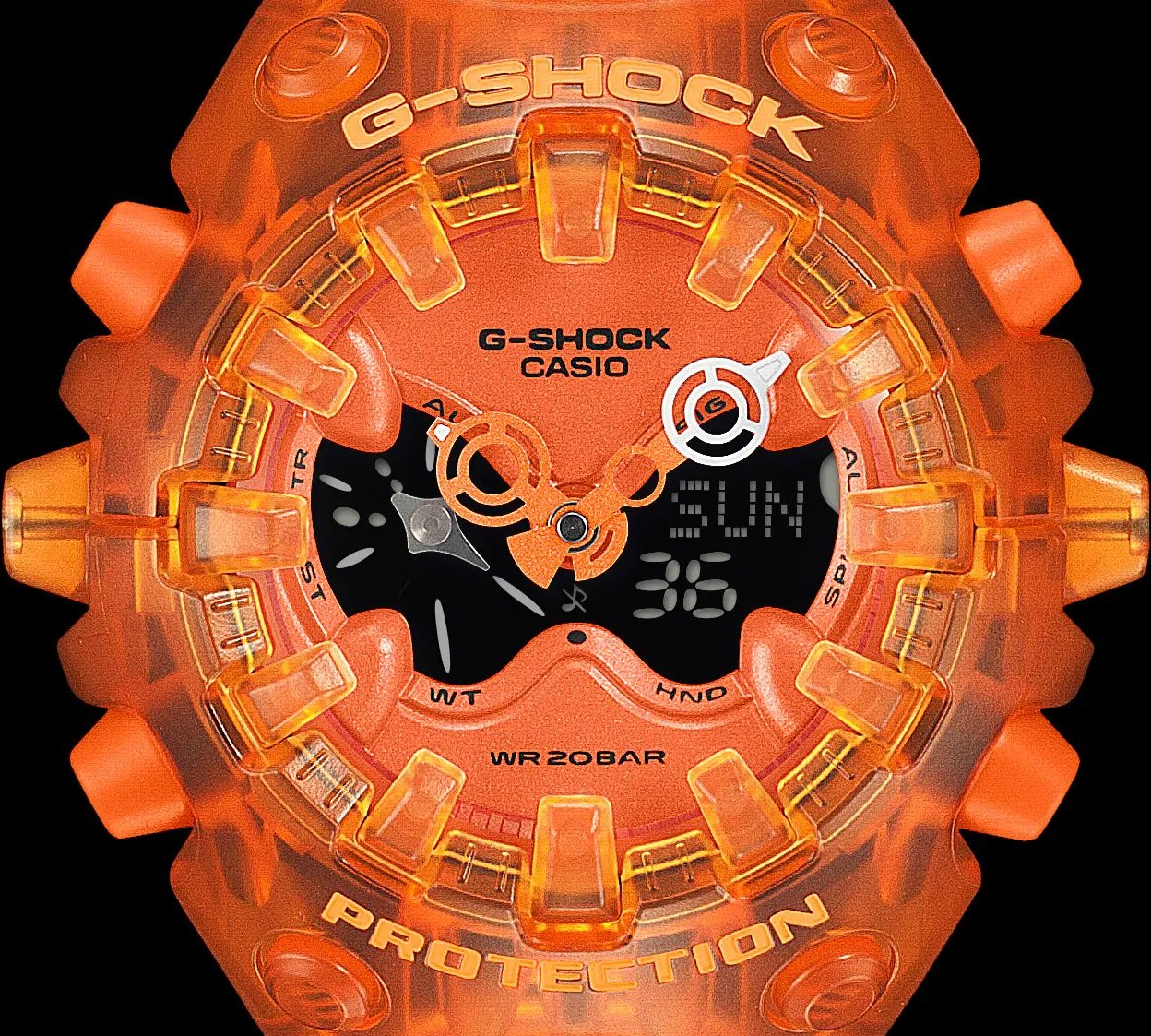 Casio G-SHOCK GA-V01SKE-4AER je výrazný model z řady GA-V01, který staví na průsvitném designu inspirovaném elektronikou z přelomu milénia. Oranžové poloprůhledné provedení působí futuristicky a současně sportovně, takže na ruce okamžitě zaujme i na dálku. Kombinovaný číselník propojuje analogové ručky s velkým LCD displejem a díky vrstvené konstrukci vytváří technický, plastický dojem. Charakter modelu podtrhují masivní indexy, které zasahují až přes sklo a zároveň ...